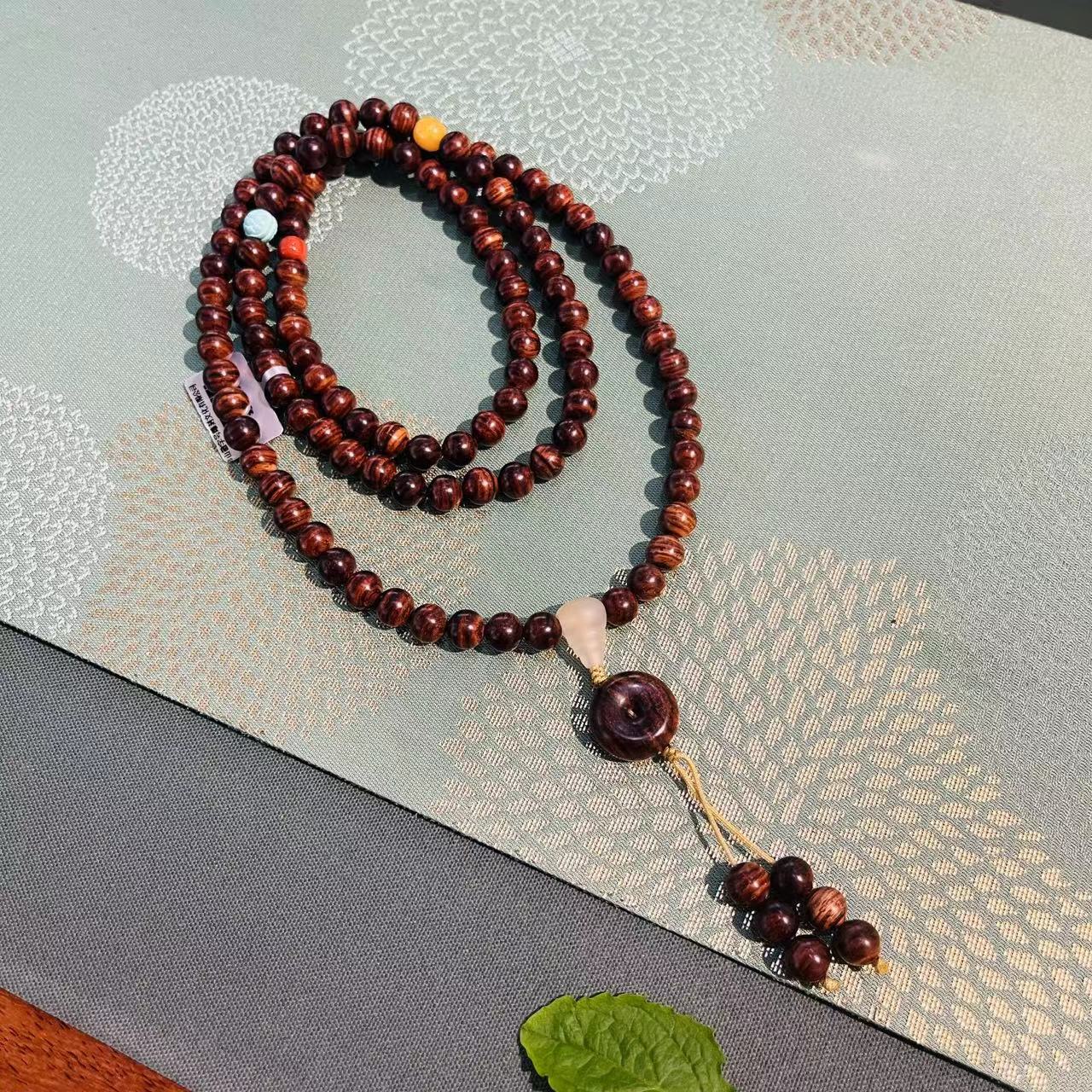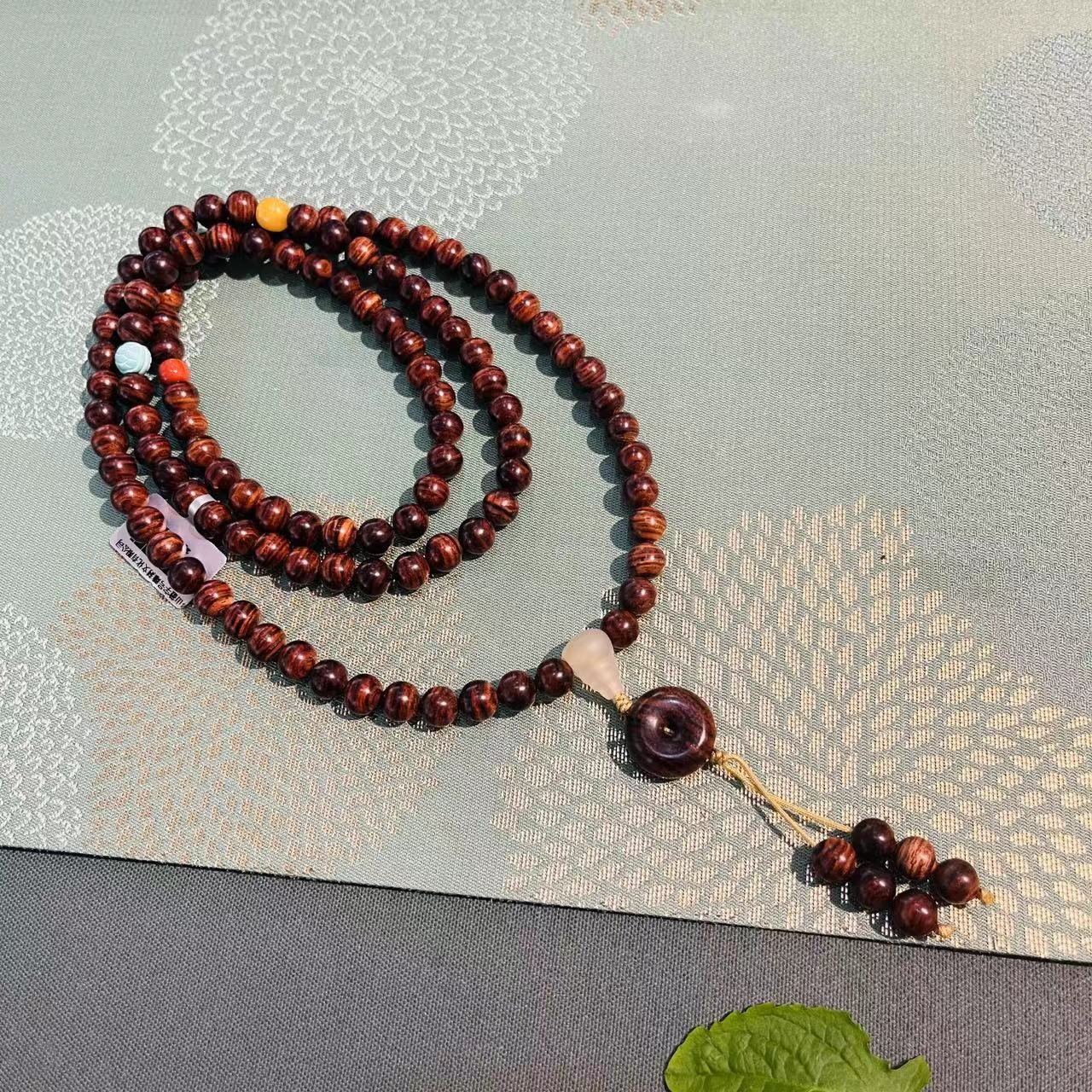 0.8圆珠海南黄花梨手持珠串-平安扣款