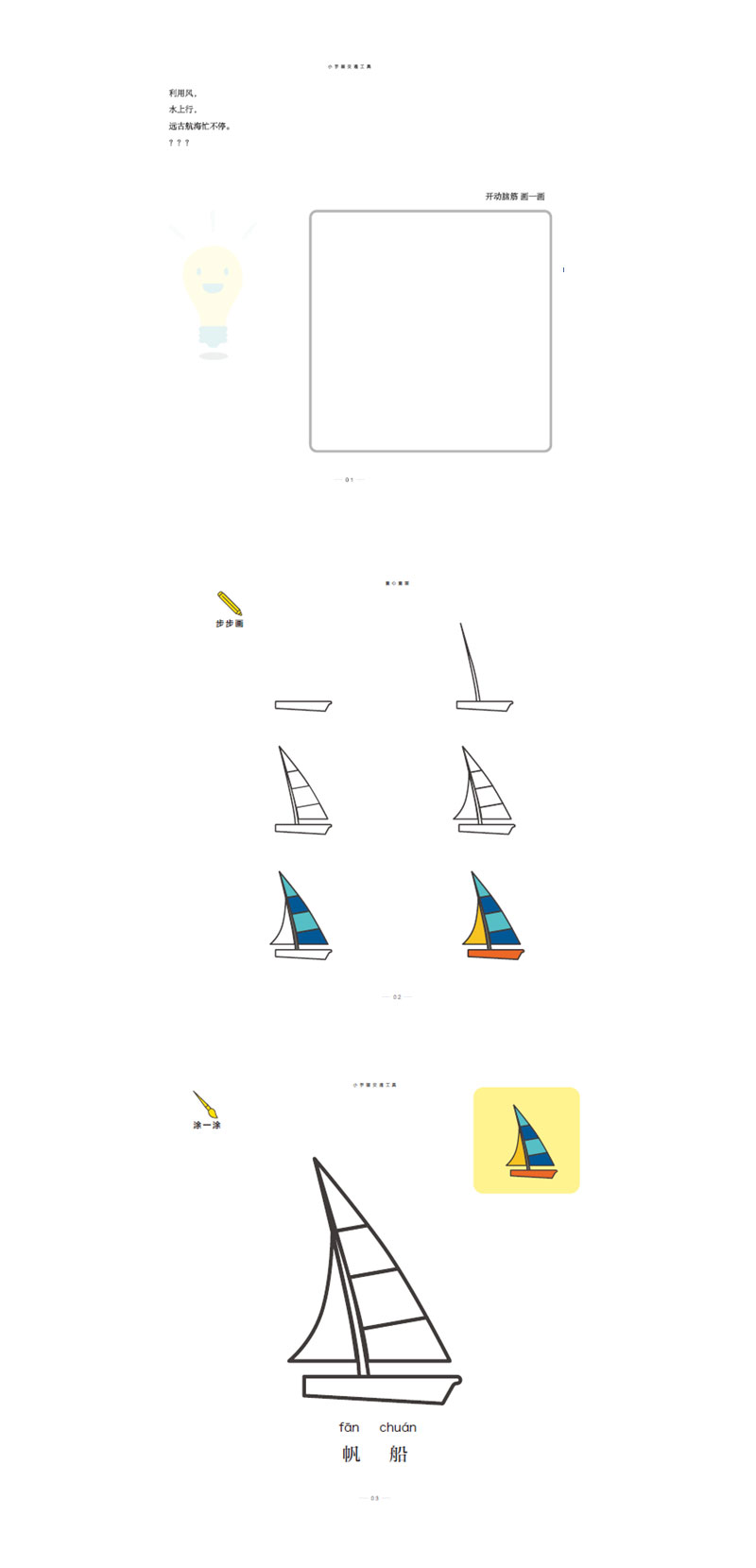 这是一本集儿歌、谜语、拼音、识字、涂色于一体的少儿美术启蒙书,不同于市场上多见的填色书,能给孩子大脑以多方面的刺激,不但有简单易操作的涂色,也有朗朗上口的谜语和儿歌,还有锻炼孩子眼、脑、手协调发展的分步画,色彩明快,难易结合,设计丰富不单调,适合多个年龄段的孩子。