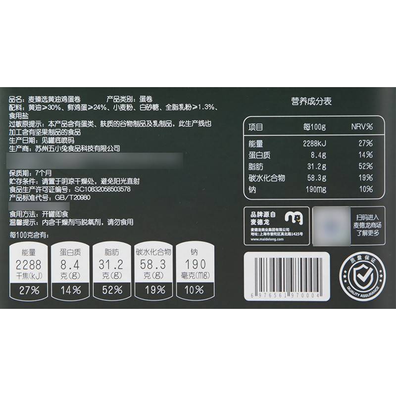 【MDL】麦臻选黄油鸡蛋卷 418g