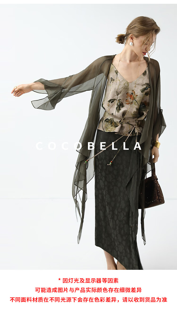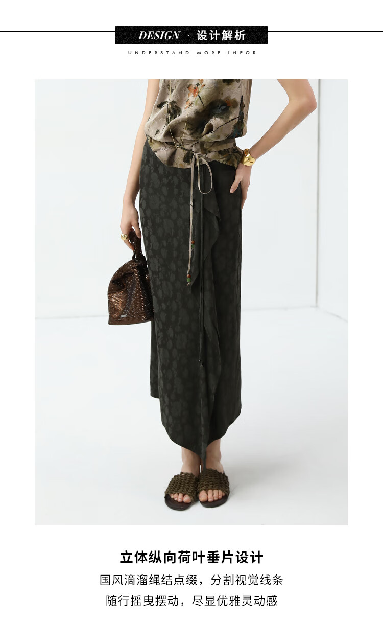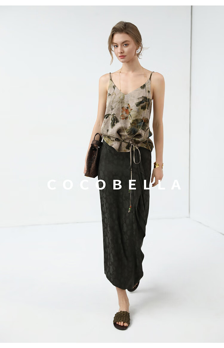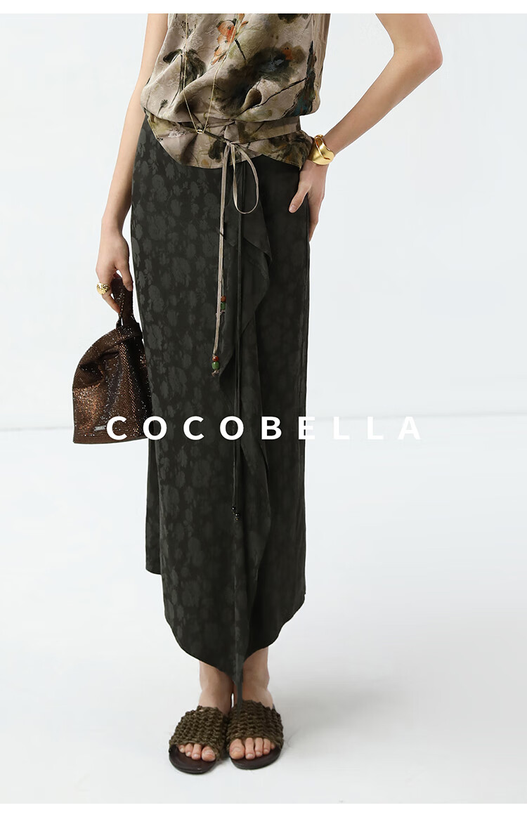 COCOBELLA[100%人丝]新中式提花半身裙秋冬不对称裹身裙HS7036-2