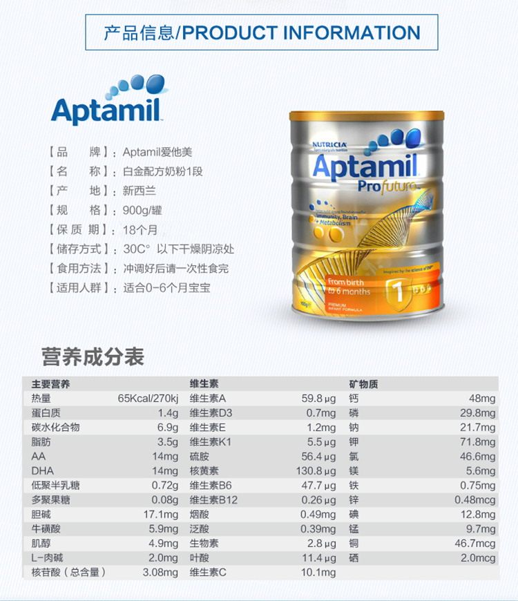 爱他美 白金版profutura奶粉 1段 900克 两罐装 澳洲