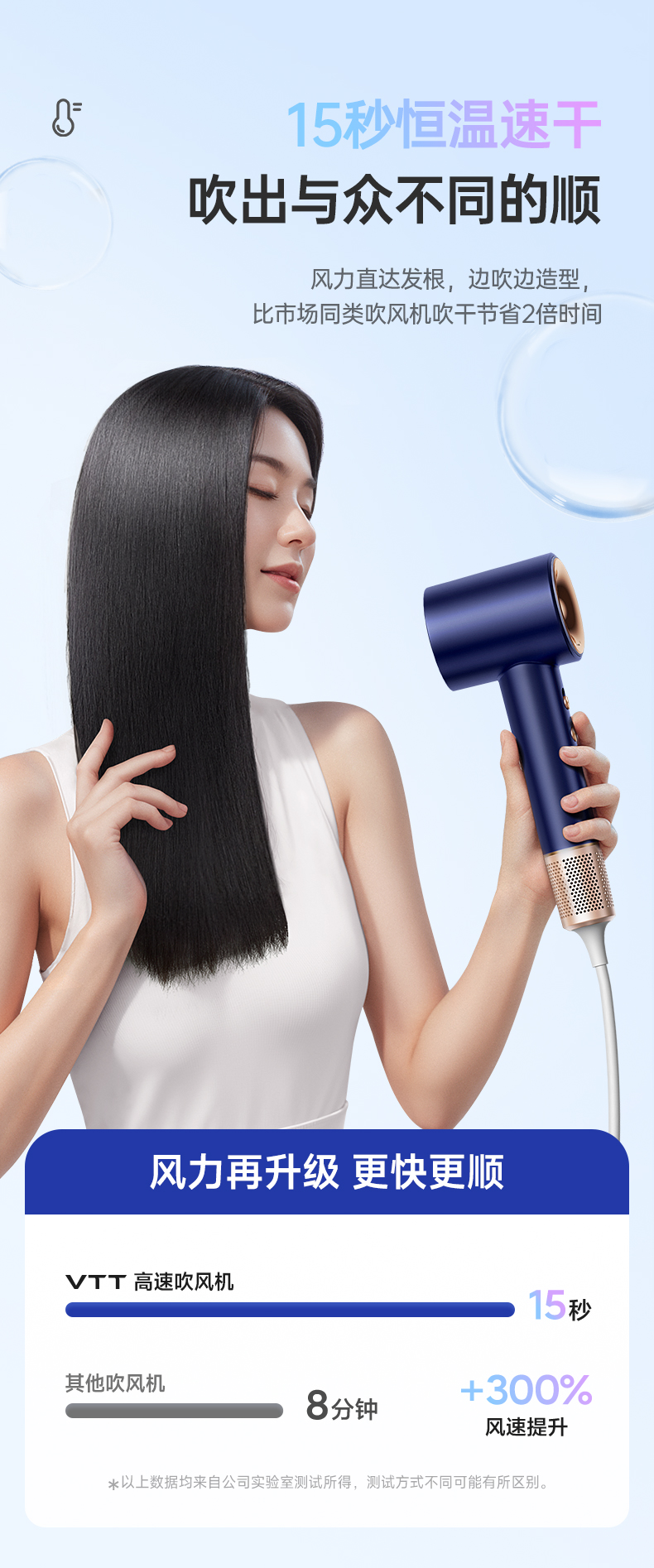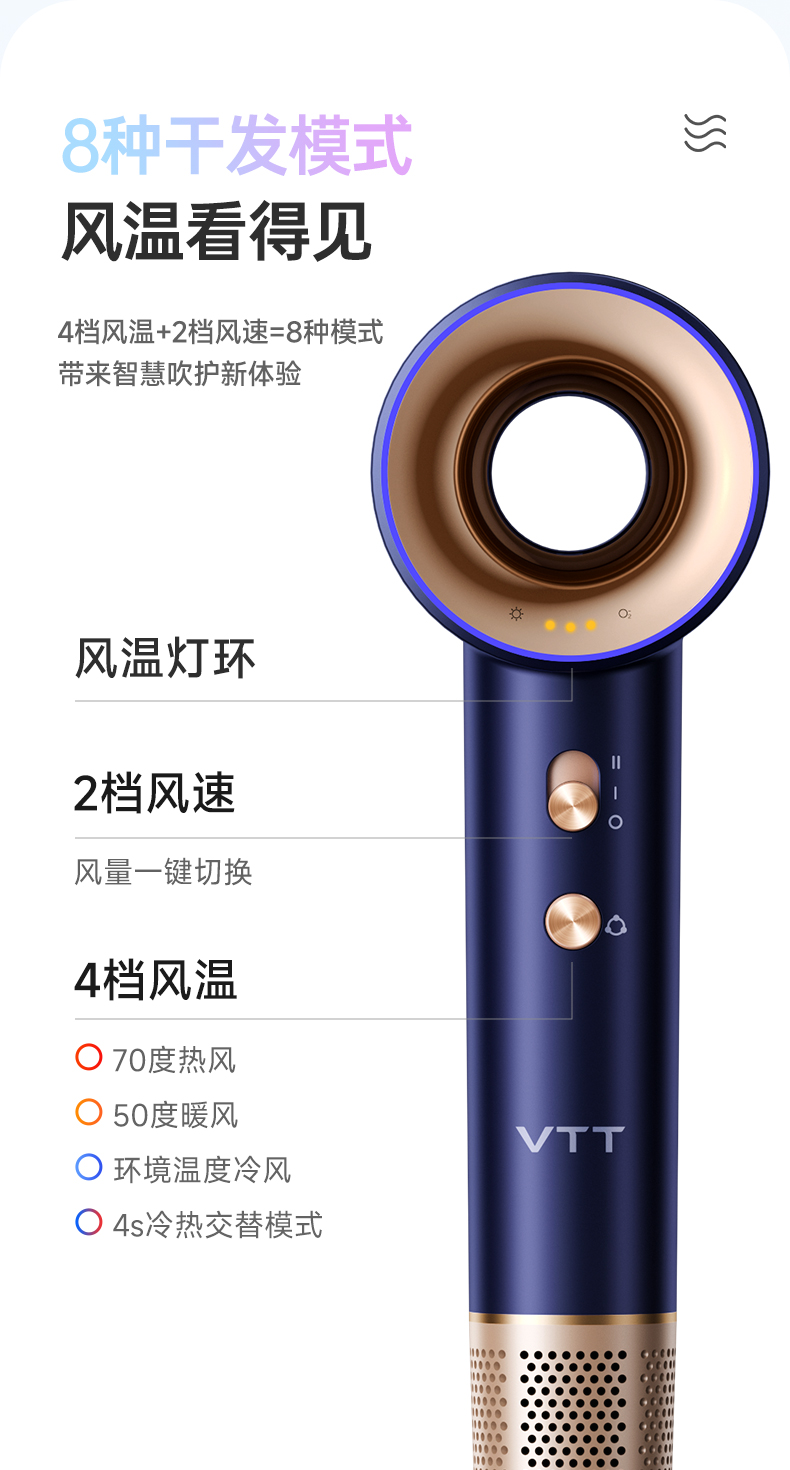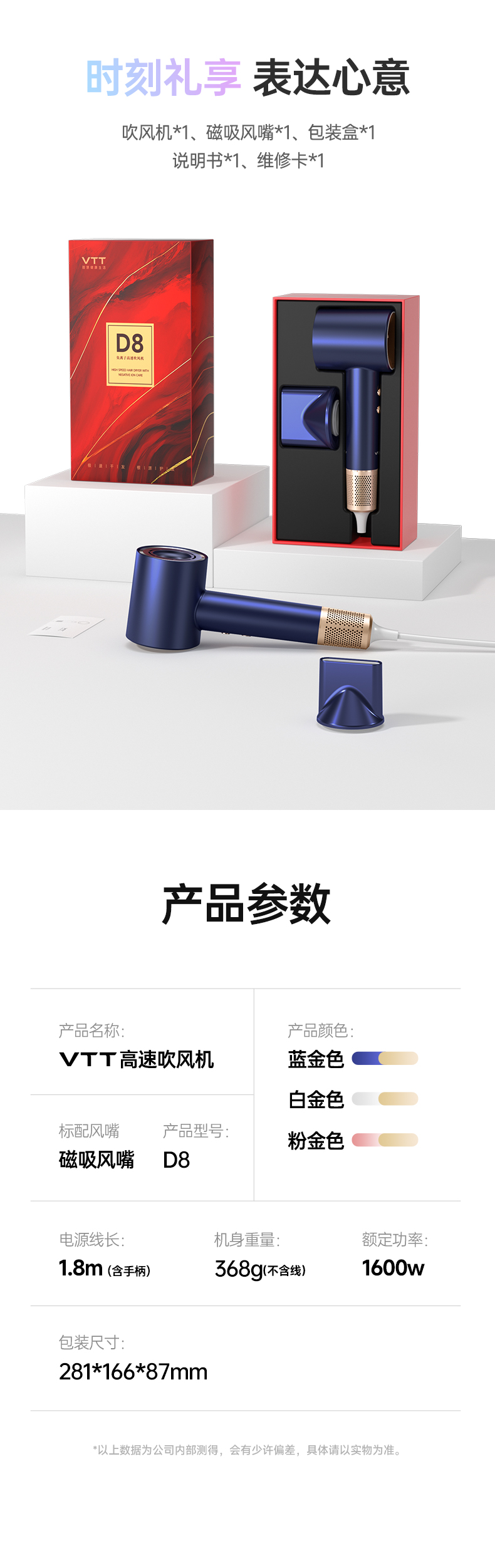 【自营】VTT【德国】D8高速吹风机家用大功率负离子养护发大风力速干不伤发低噪音便携吹造型专业电吹风筒送礼物