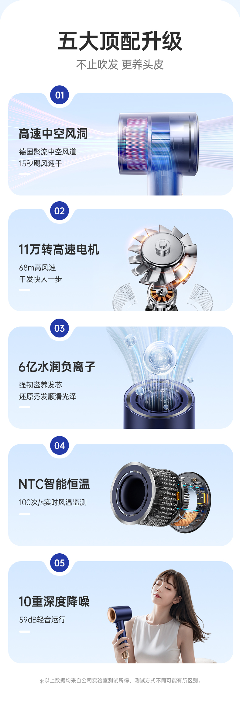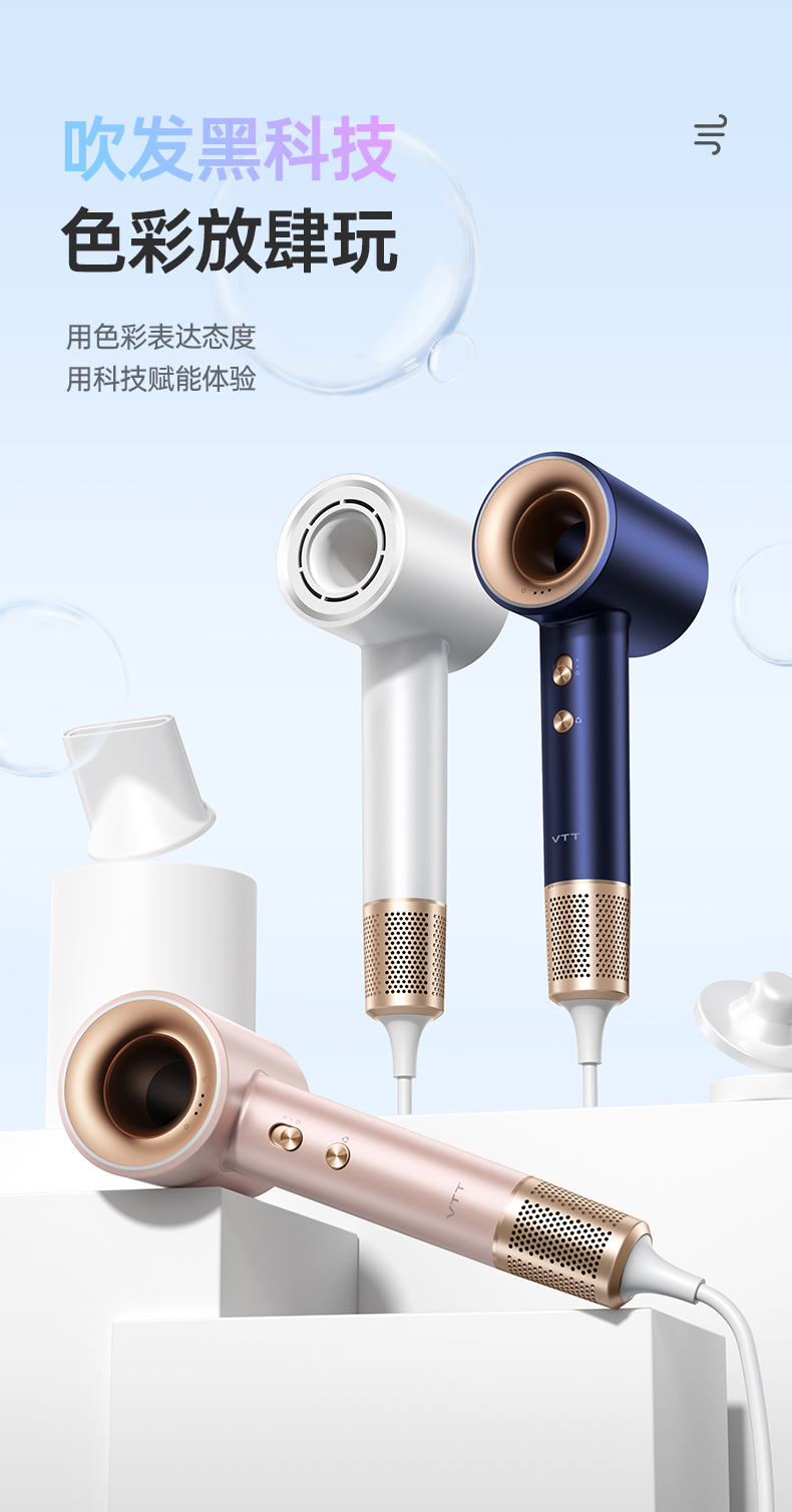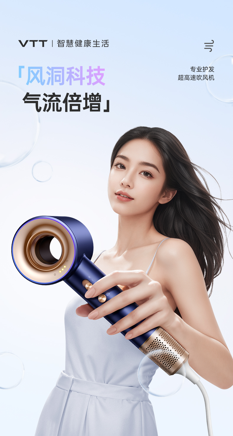 【自营】VTT【德国】D8高速吹风机家用大功率负离子养护发大风力速干不伤发低噪音便携吹造型专业电吹风筒送礼物