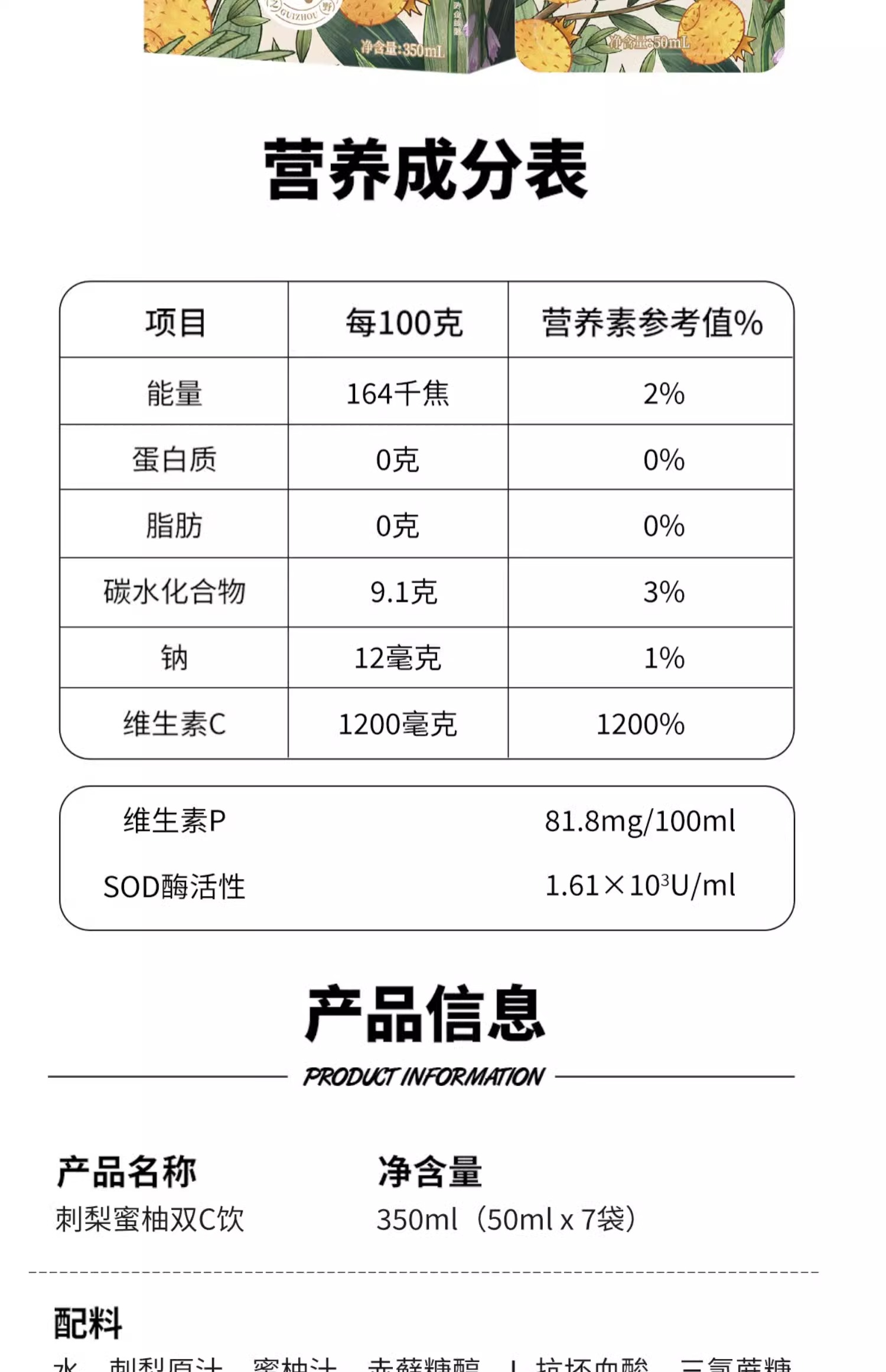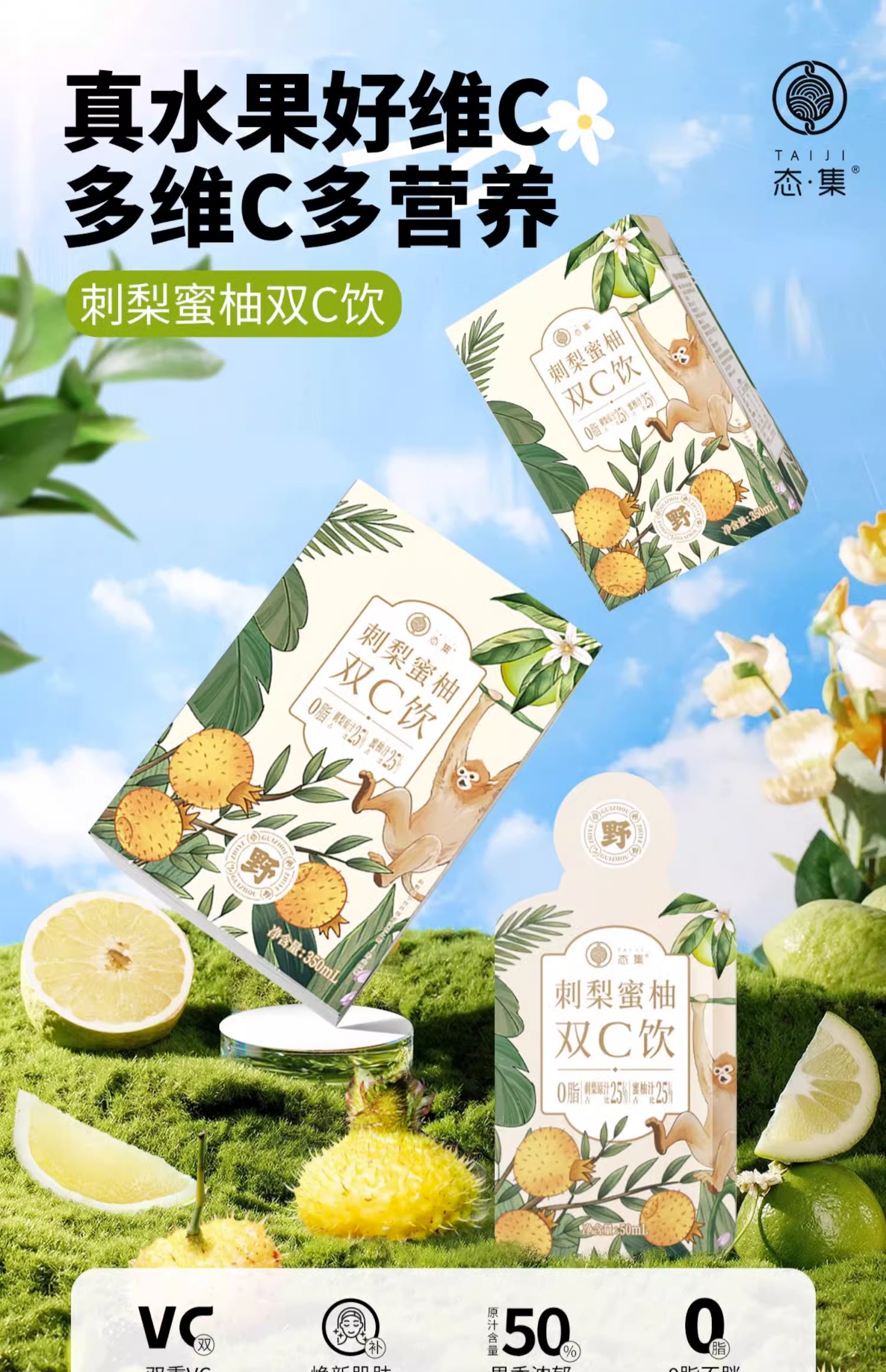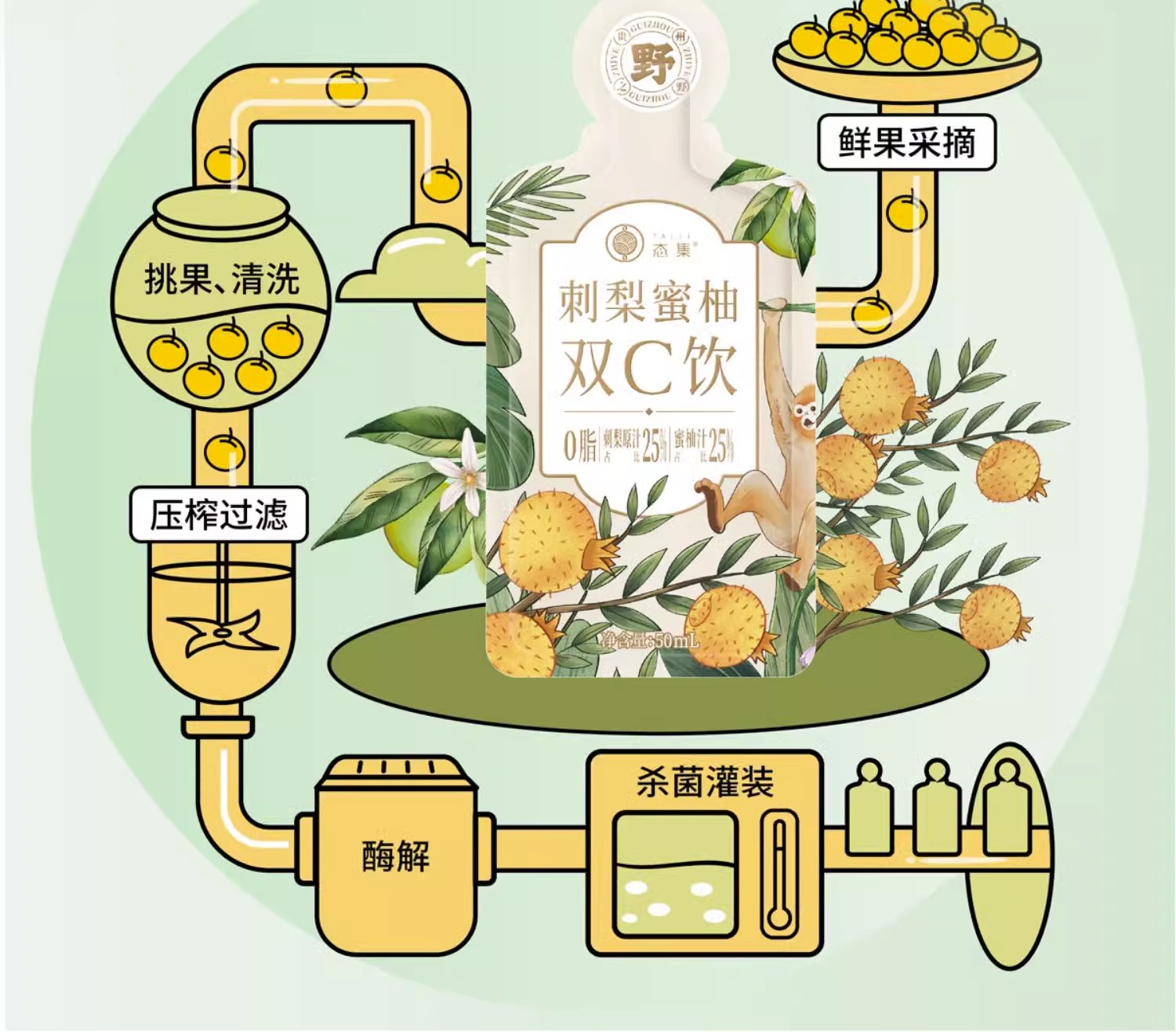 【贵州毕节特产】态集有机刺梨贵州蜜柚鲜果双C饮50ml无添加剂0脂SOD刺梨原液