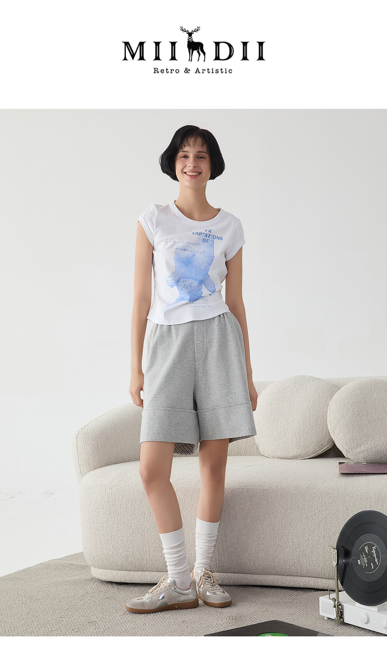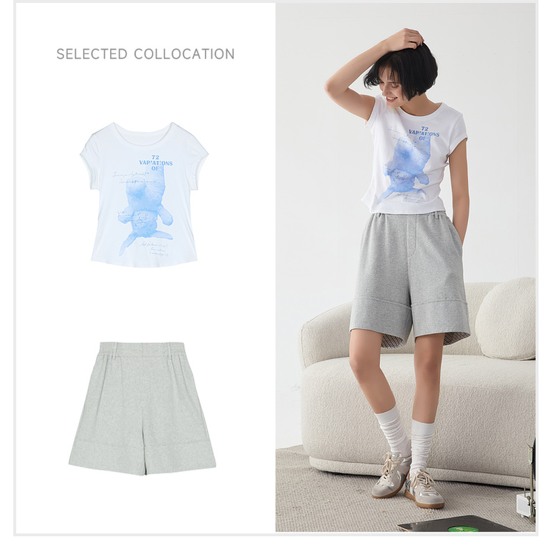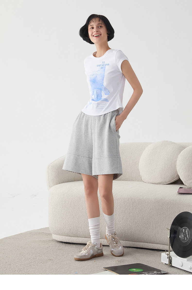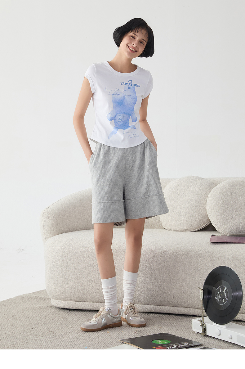 谜底印花T恤短袖女2025春季新品百搭休闲修身棉弹上衣251MT0144