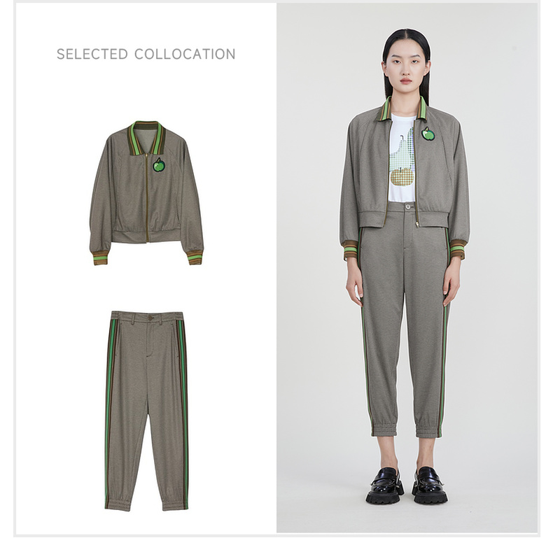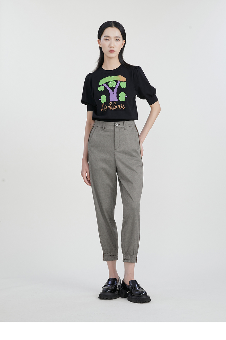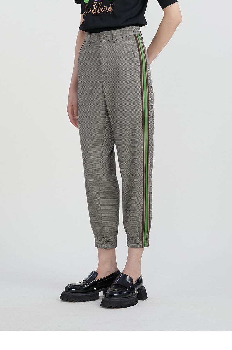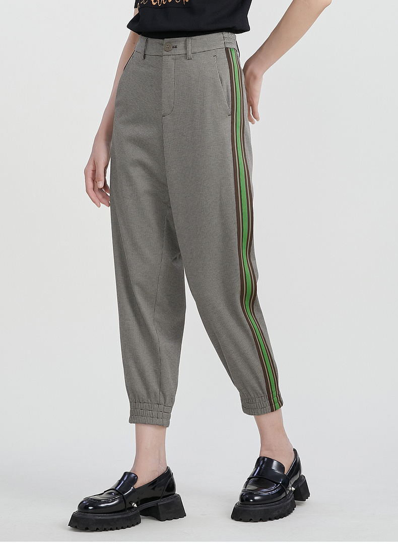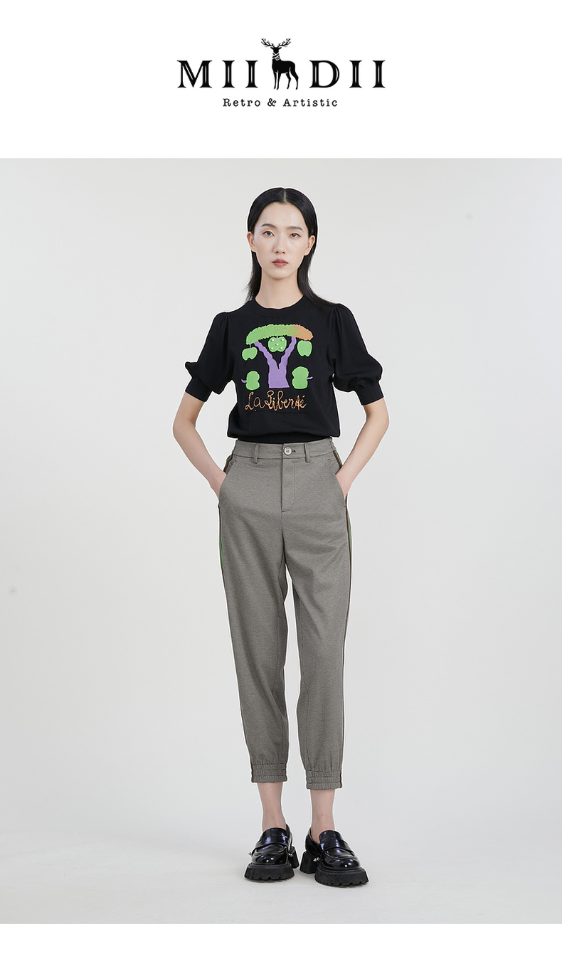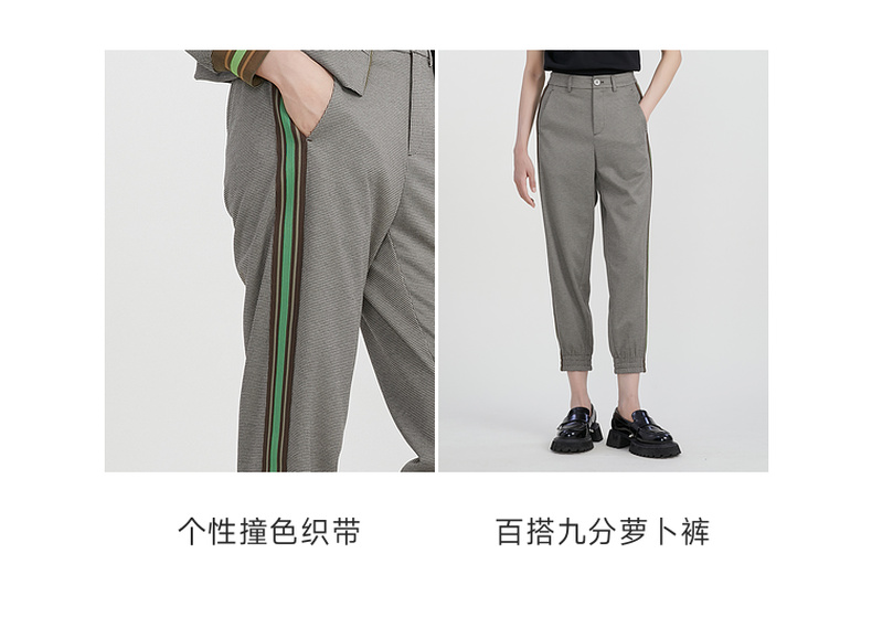 谜底复古休闲裤女2023春新款百搭时尚拼接萝卜裤九分裤231MK0165