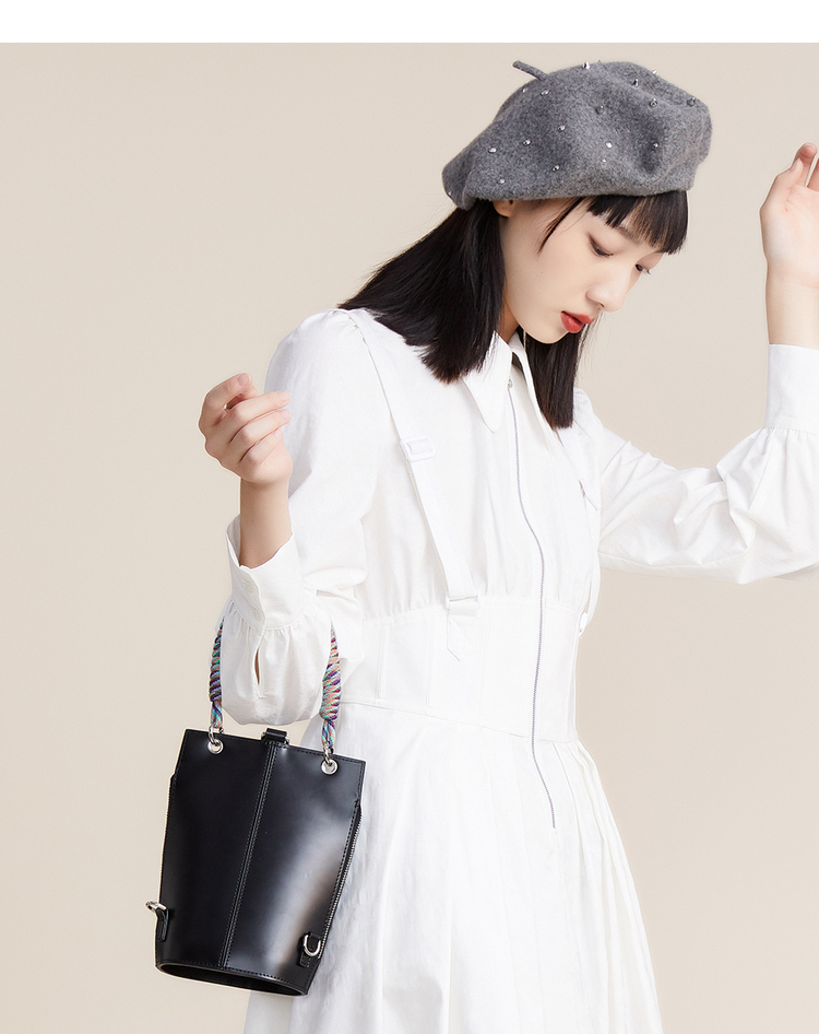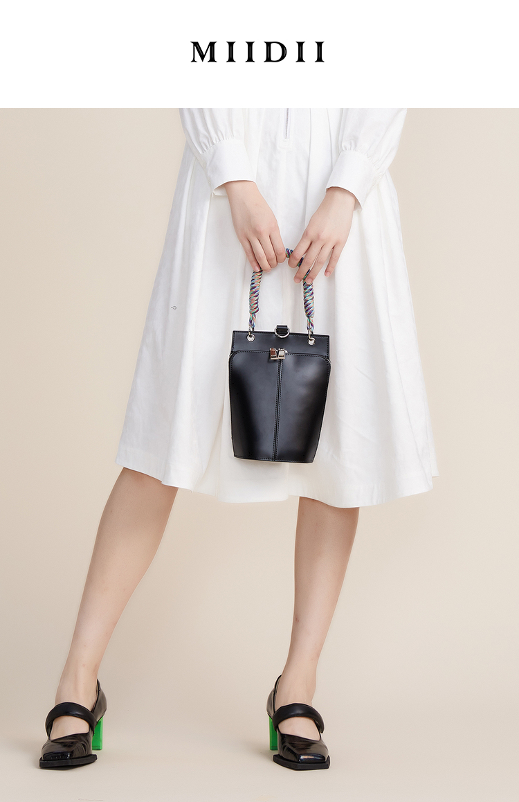 MIIDII谜底2022春新款时尚牛皮双肩包桶型真皮手提包女221MQ0423