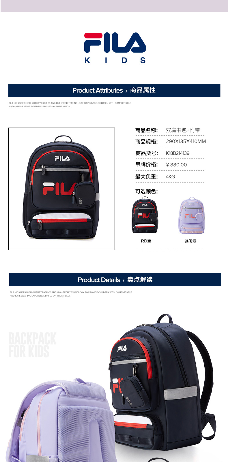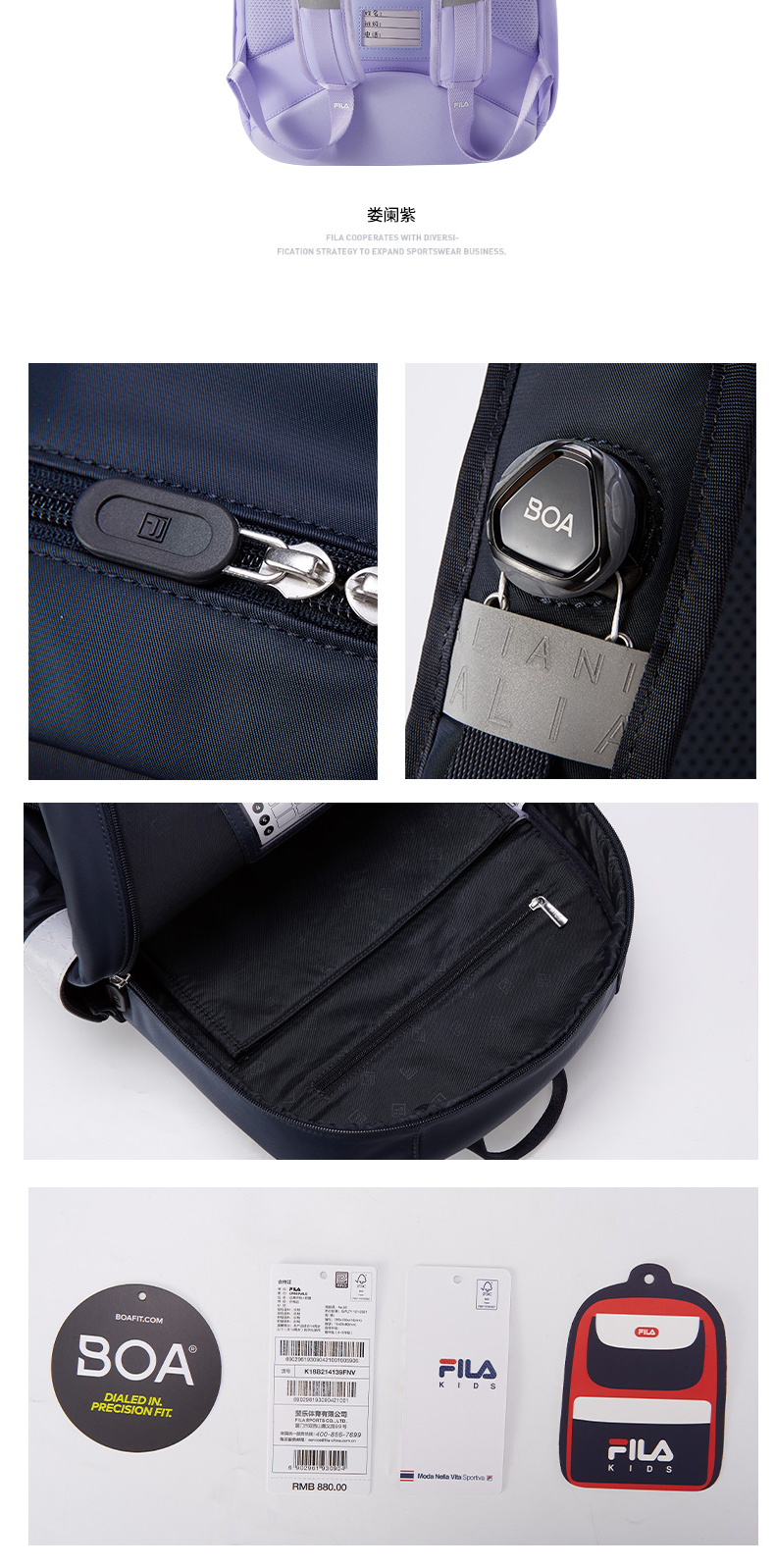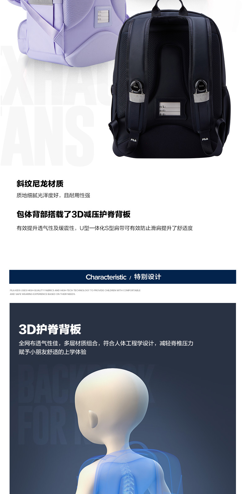 小斐乐儿童休闲背包2022春季新款BOA护脊减负书包高年级K18B214139F