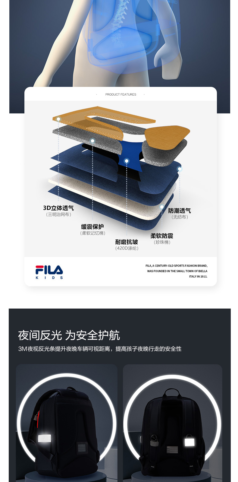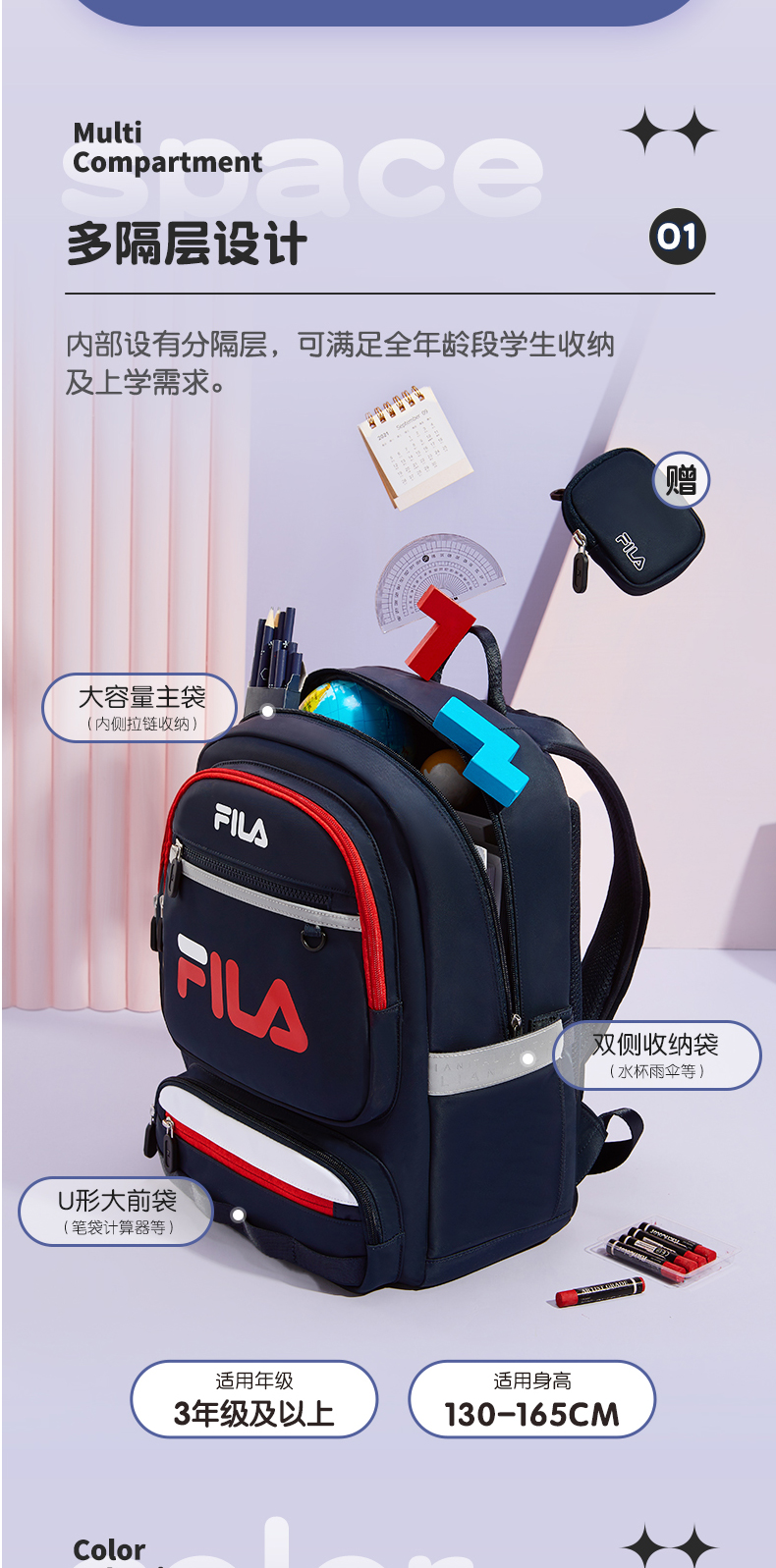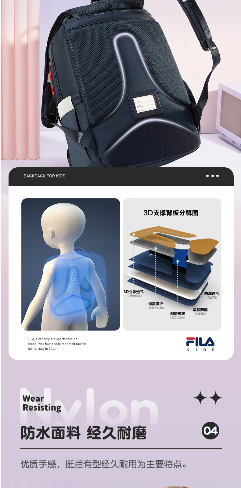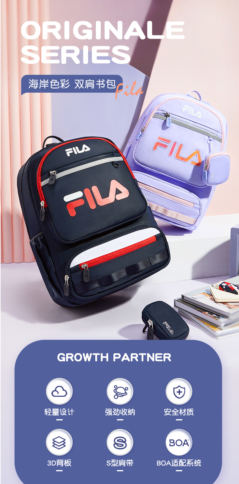 小斐乐儿童休闲背包2022春季新款BOA护脊减负书包高年级K18B214139F