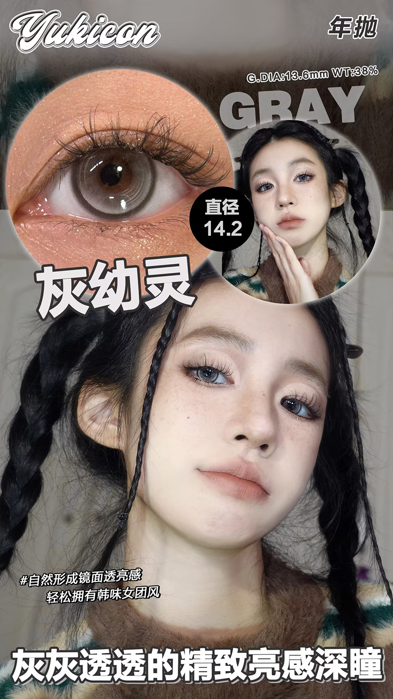 Yukicon 灰幼灵 年抛 两片 14.2mm 参考着色 13.6mm 基弧 8.6 含水 42% 新锐国货