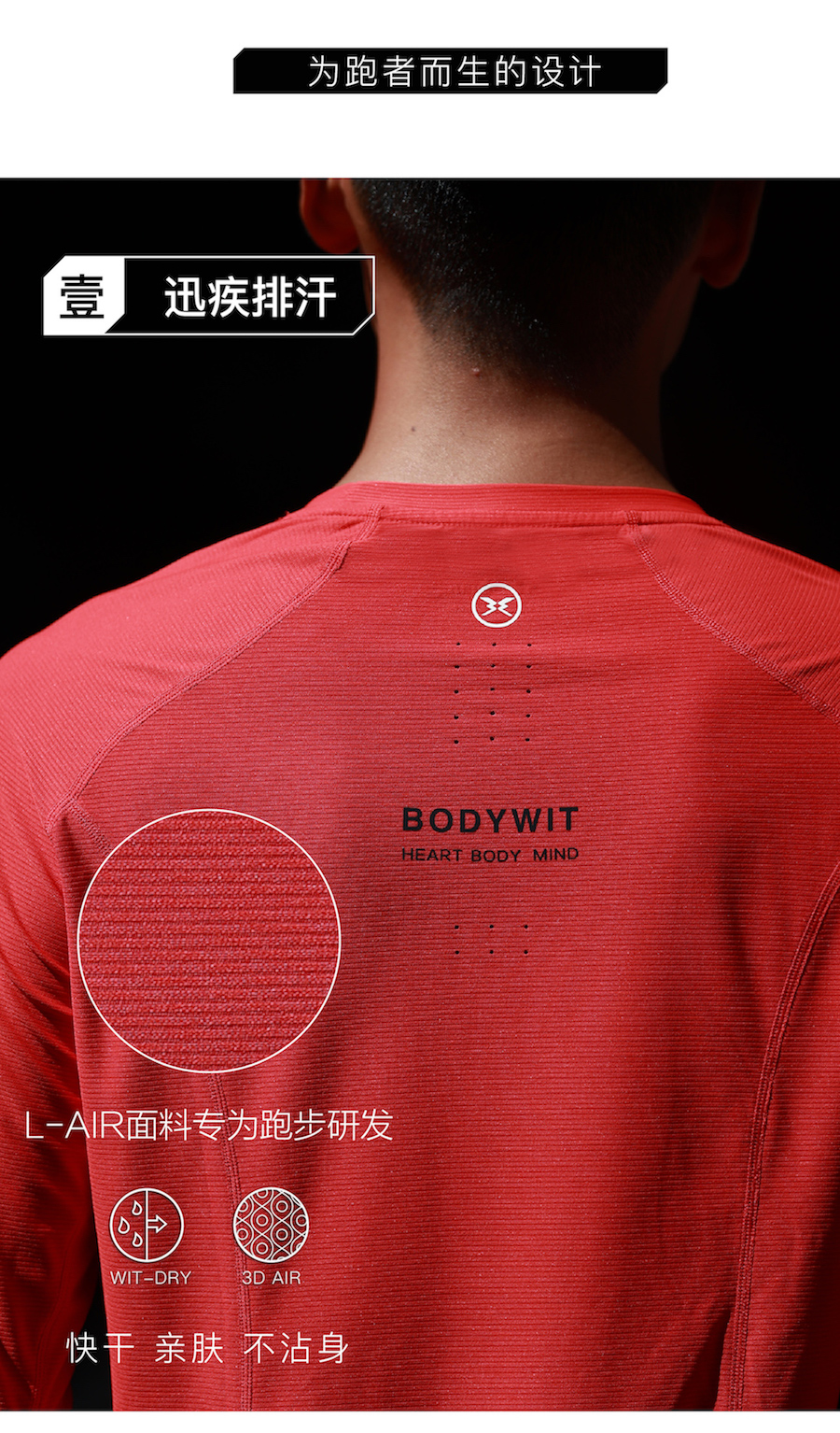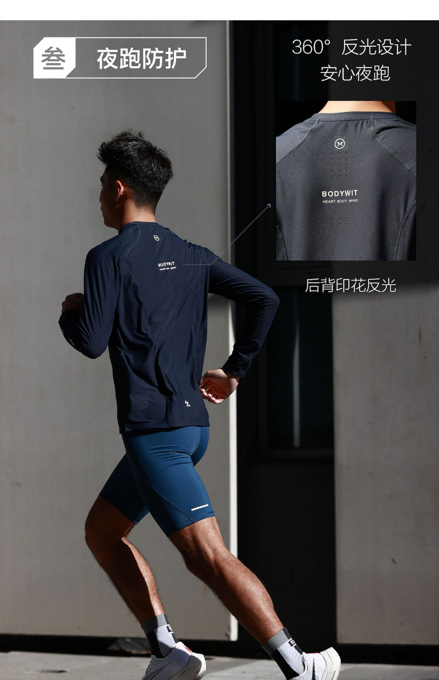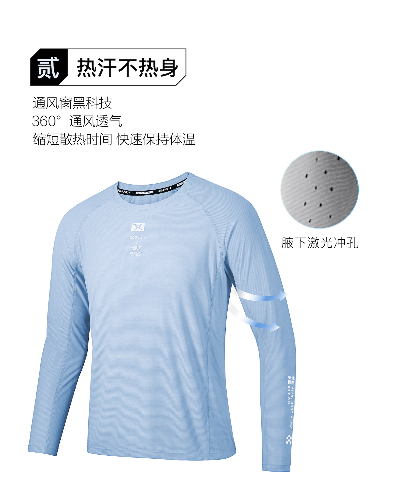 身体智慧 BODYWIT 男款 飞羽 轻薄速干圆领长袖T恤