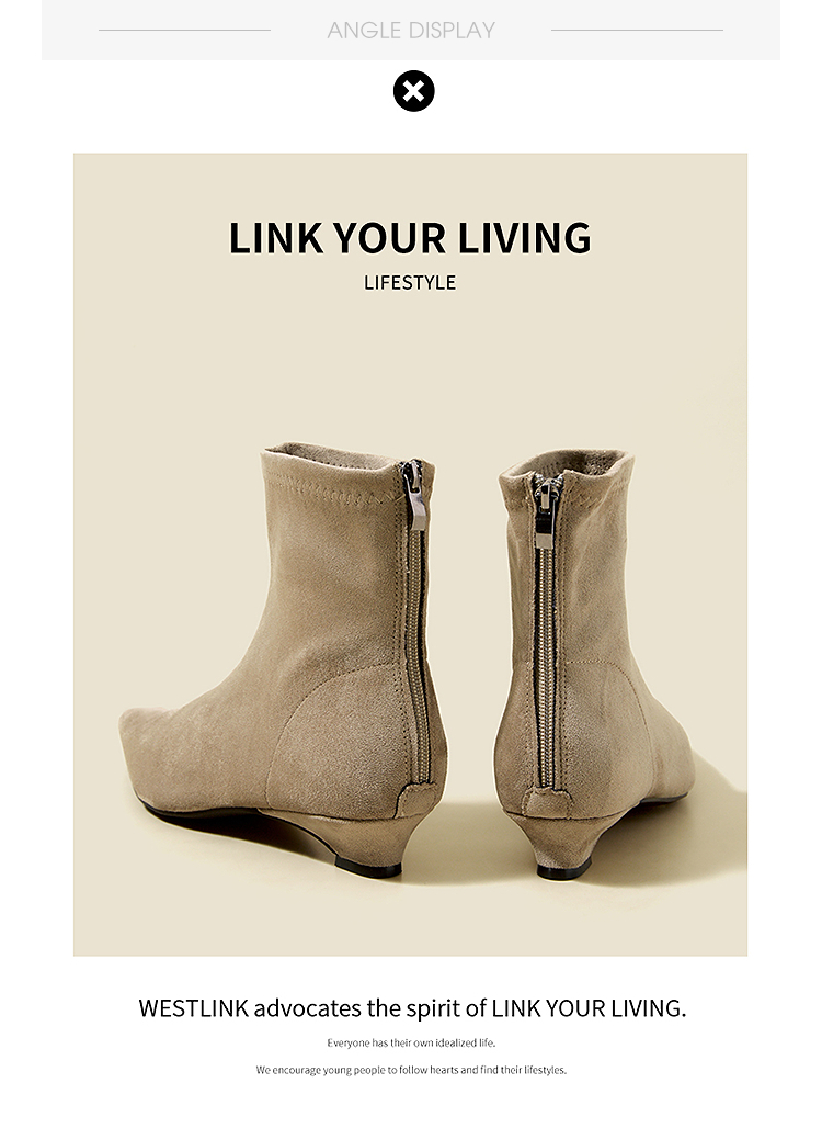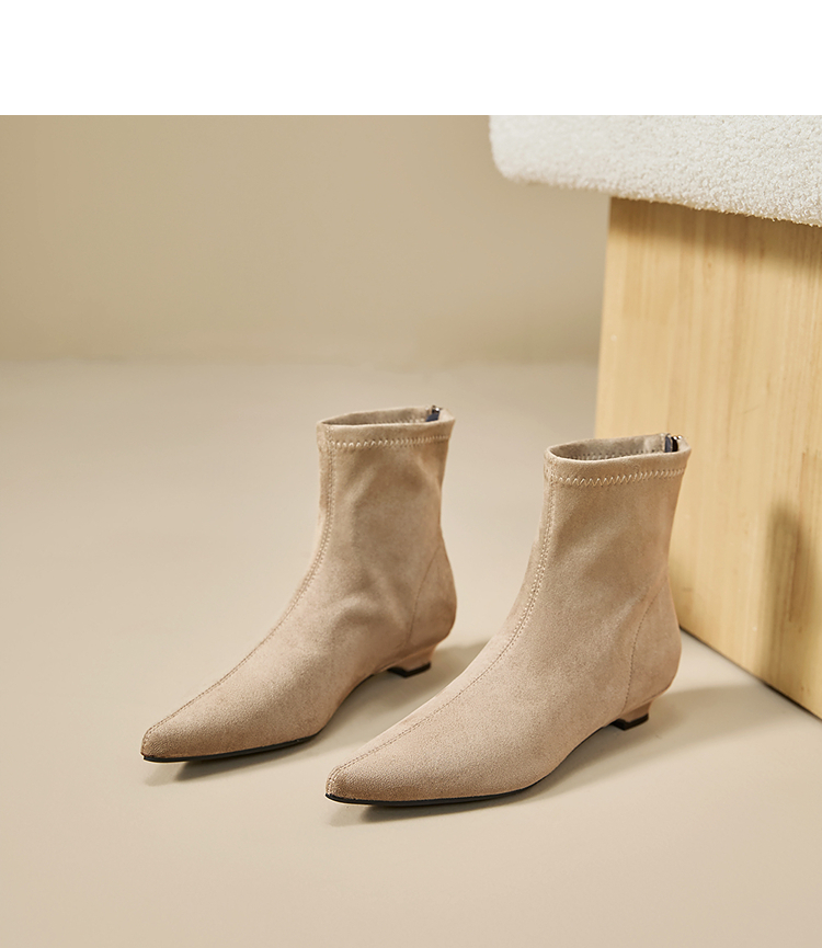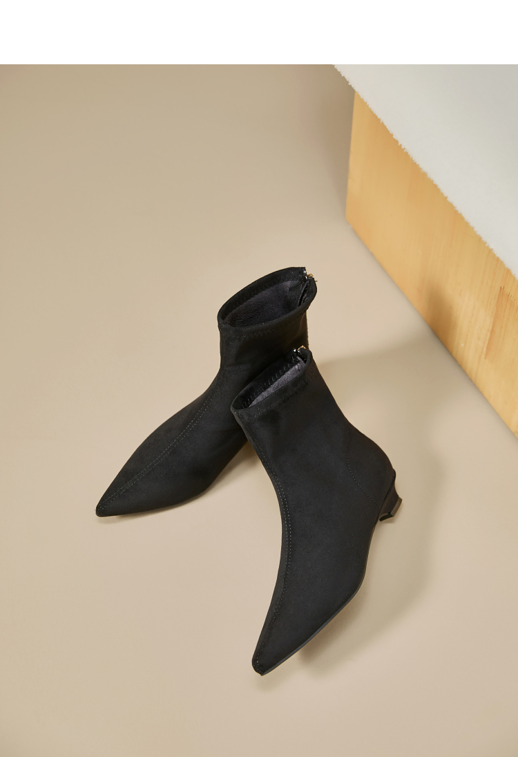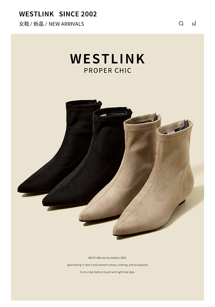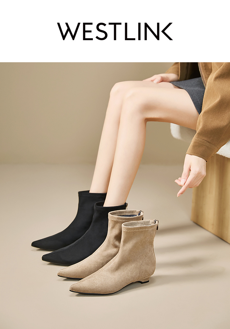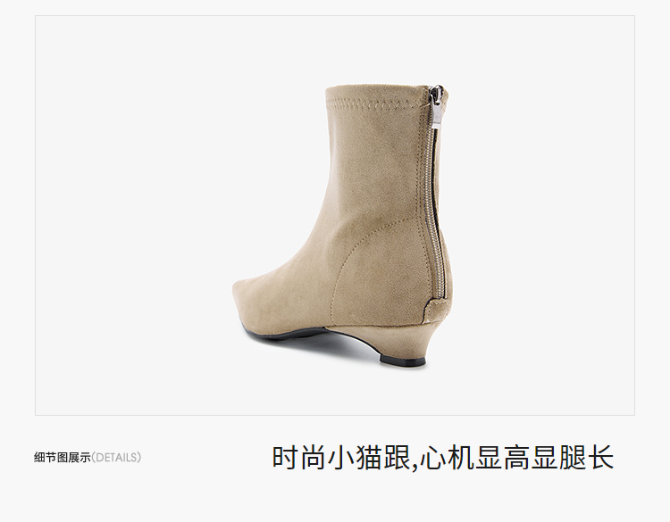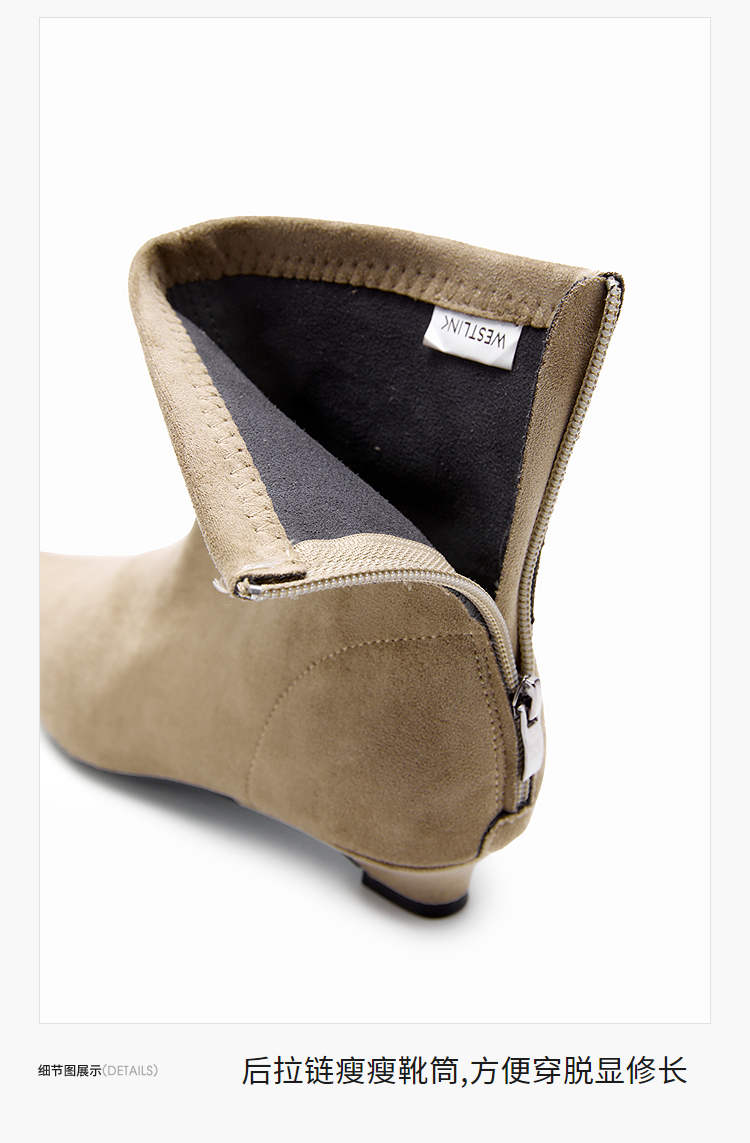 西遇瘦瘦靴女冬季新款法式踝靴显高腿长平底复古百搭气质短靴V2057171