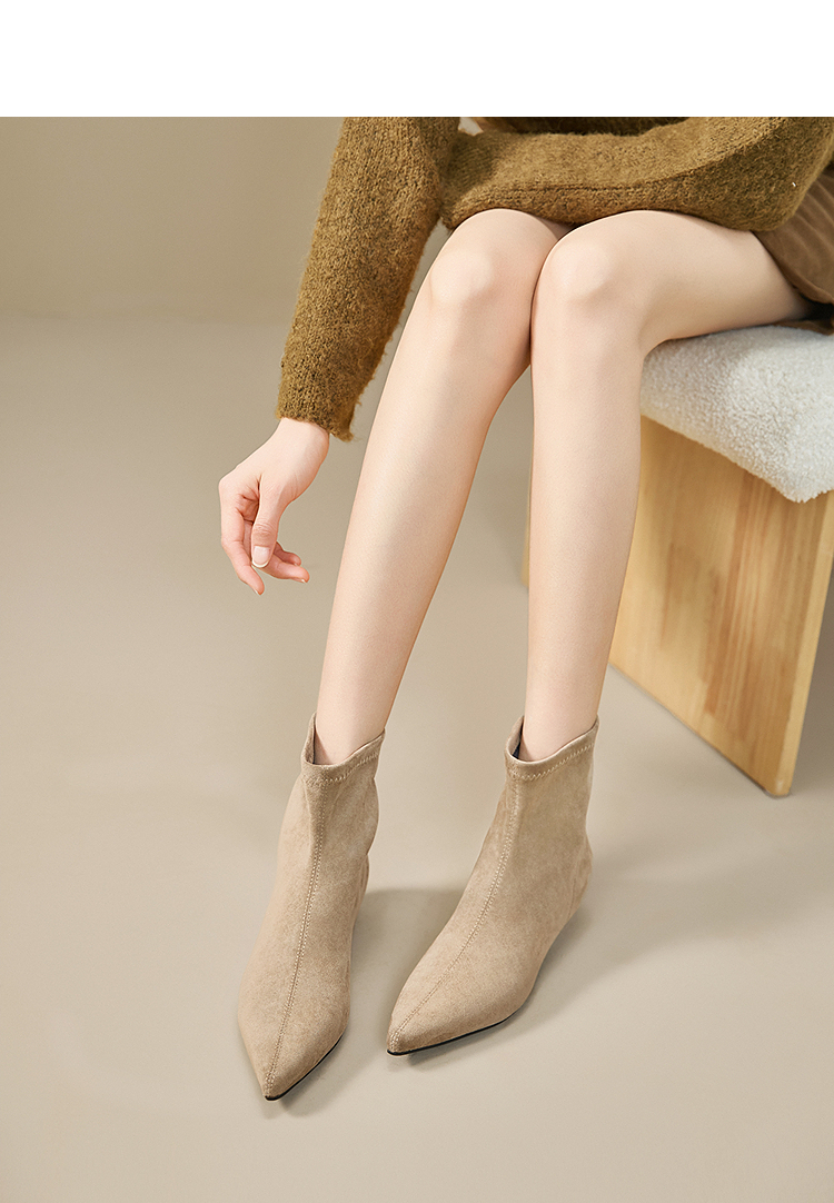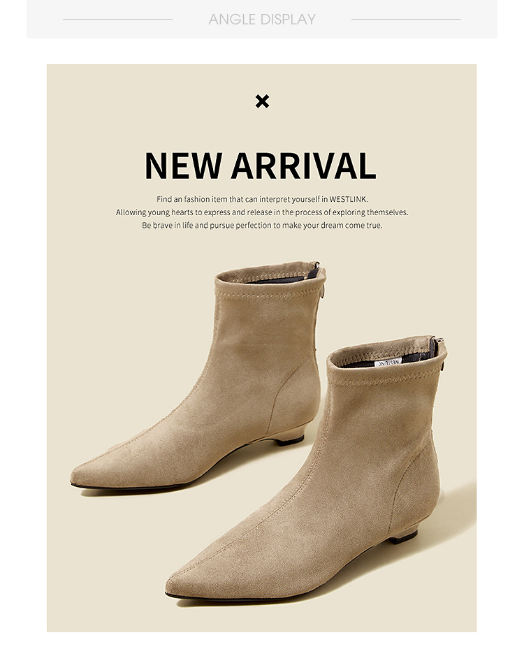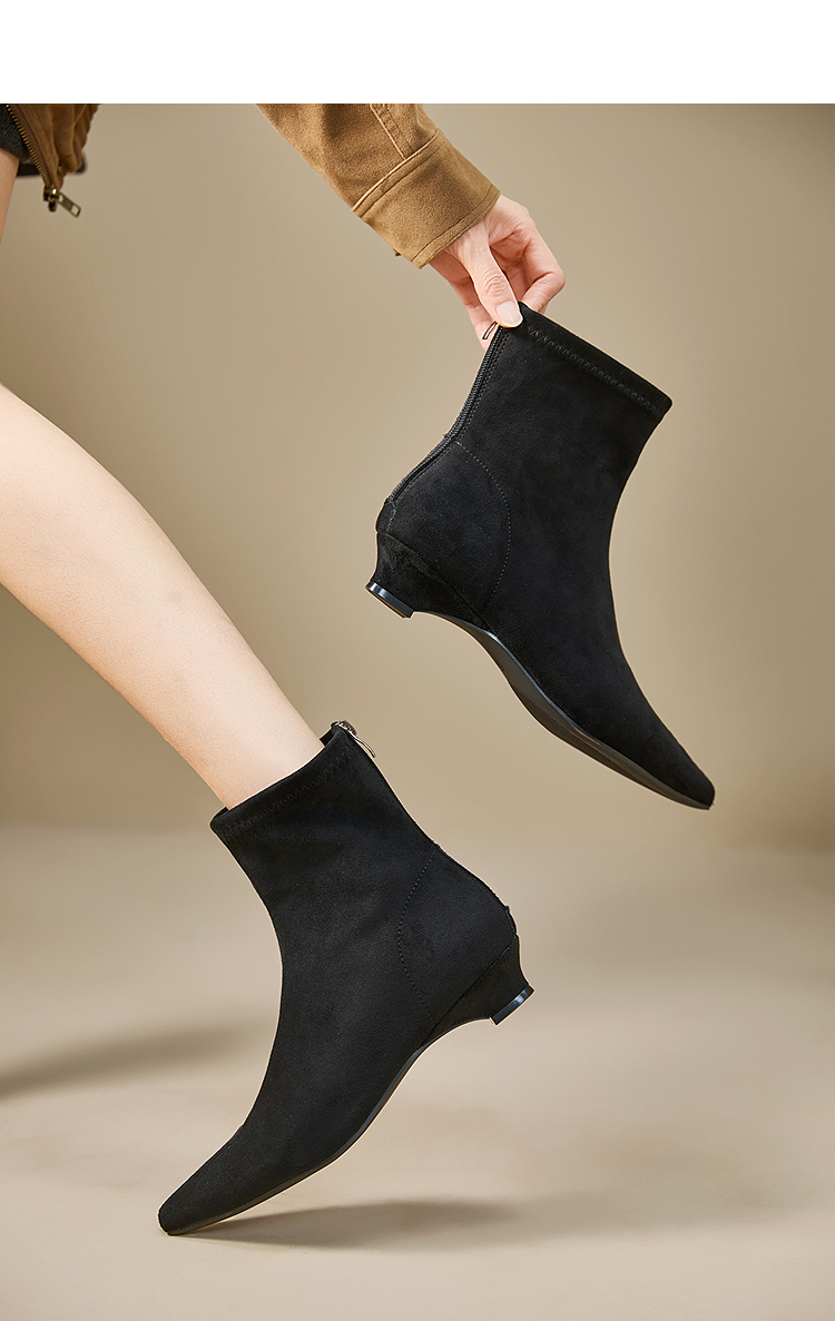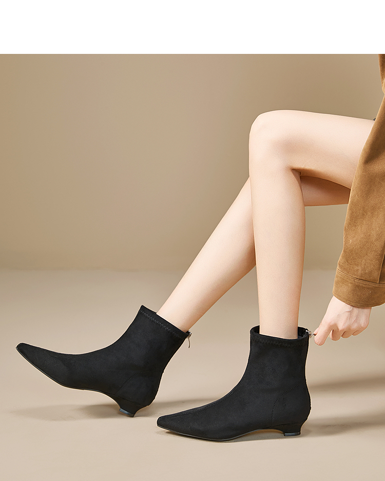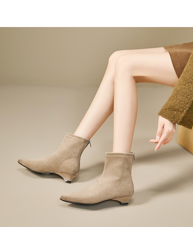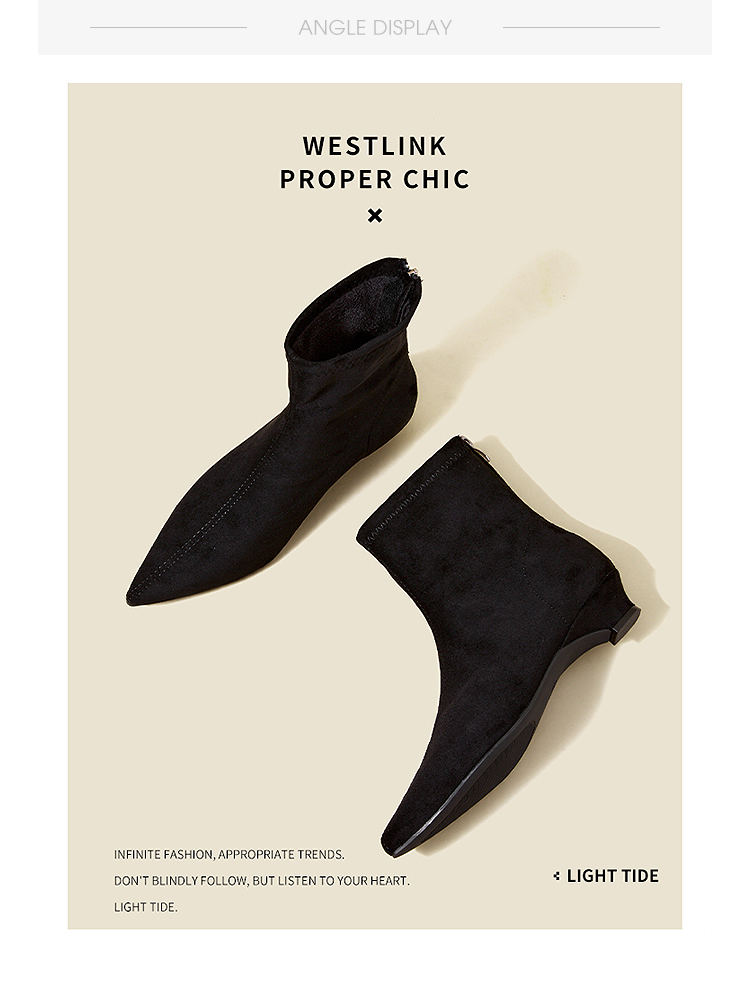 西遇瘦瘦靴女冬季新款法式踝靴显高腿长平底复古百搭气质短靴V2057171