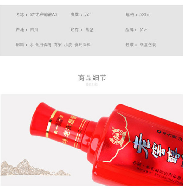 52度老窖醇酿白酒A/6 500ML