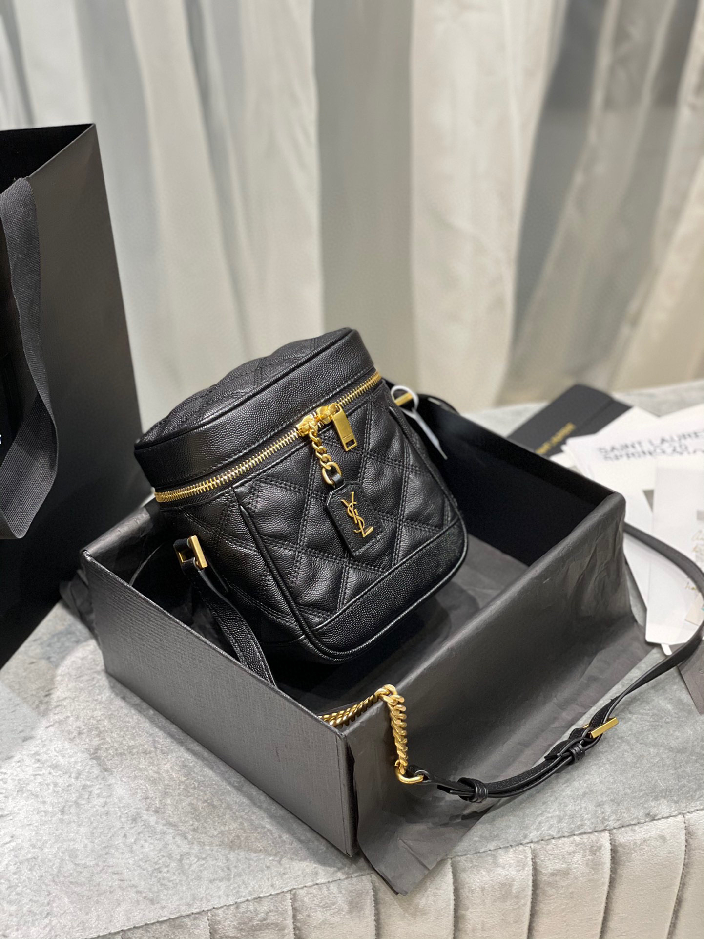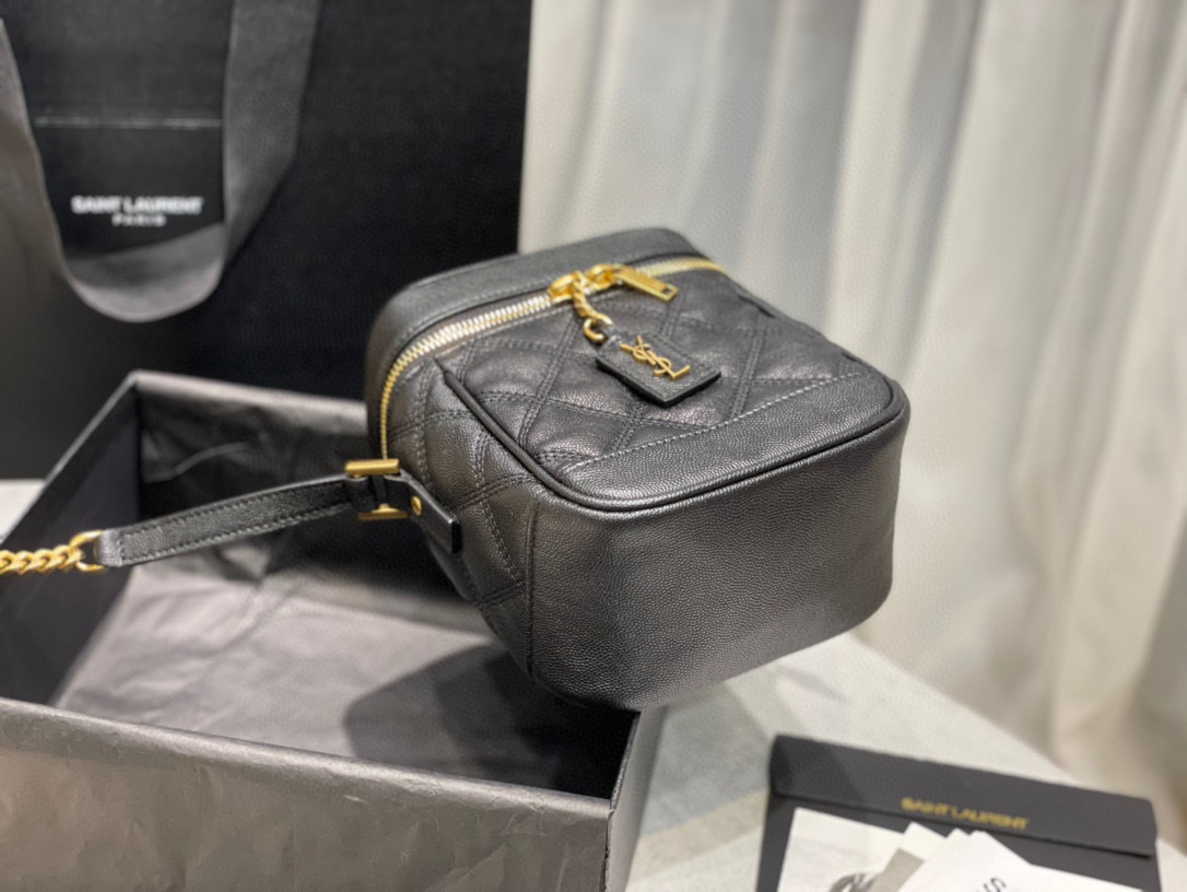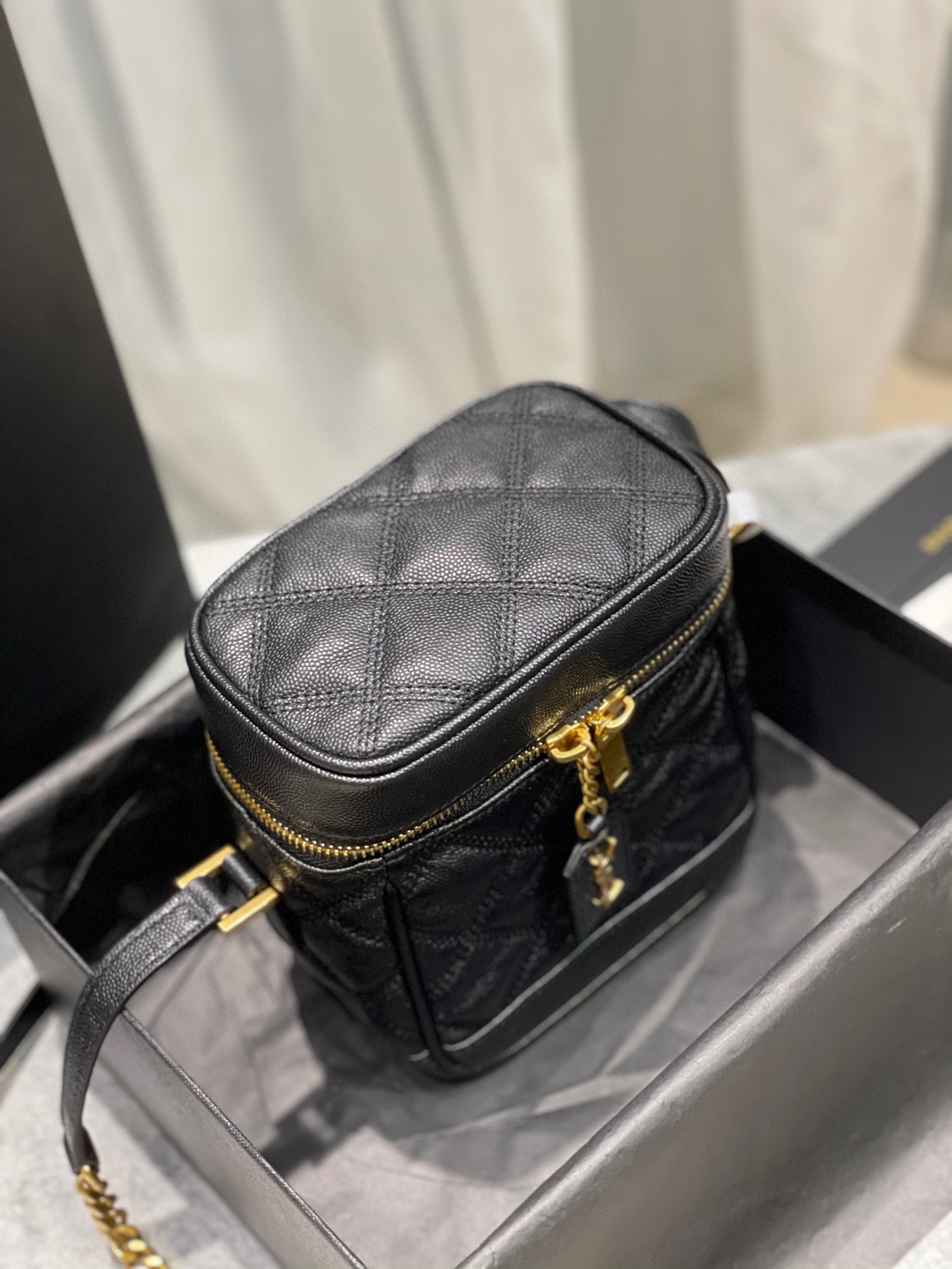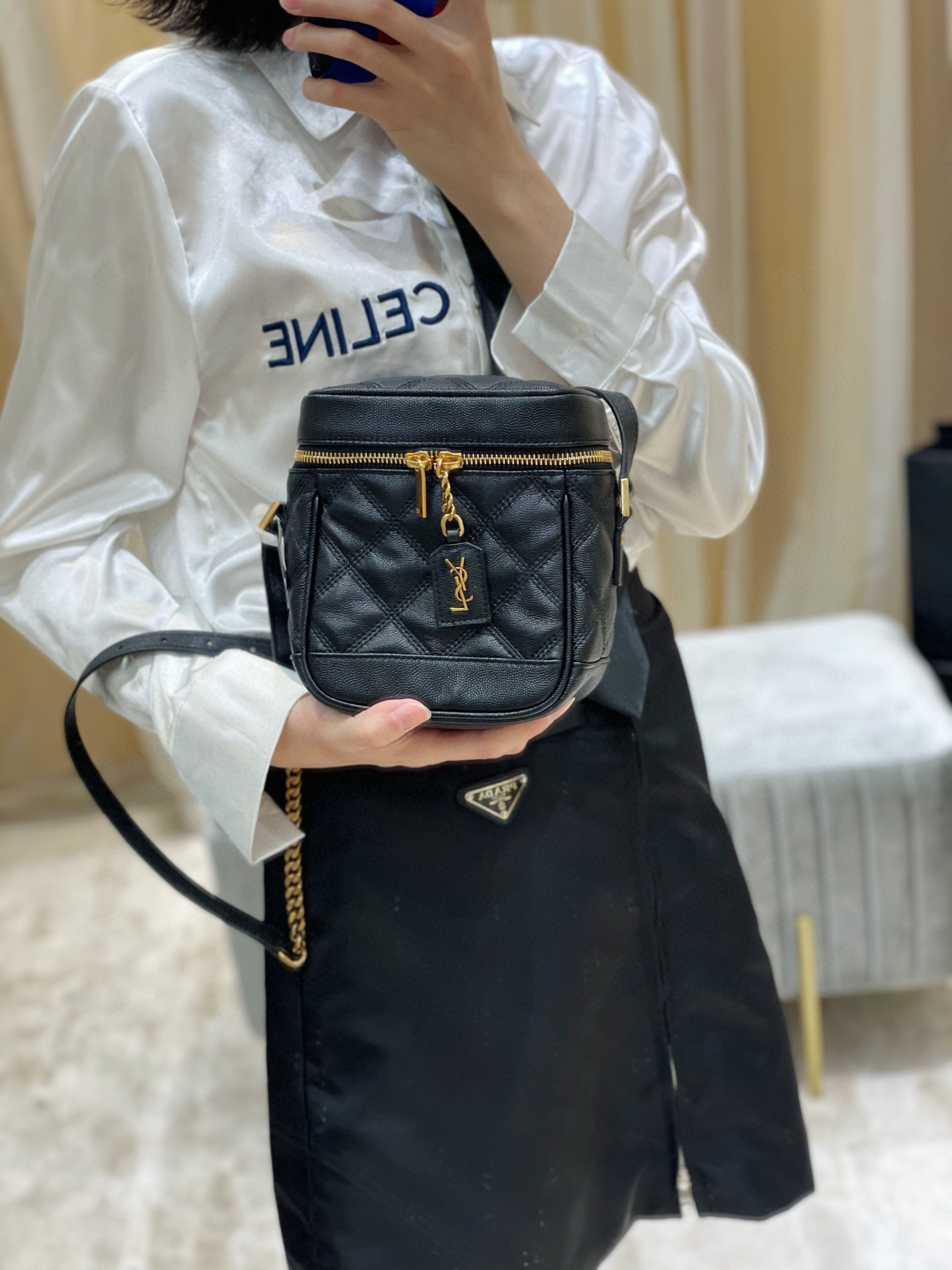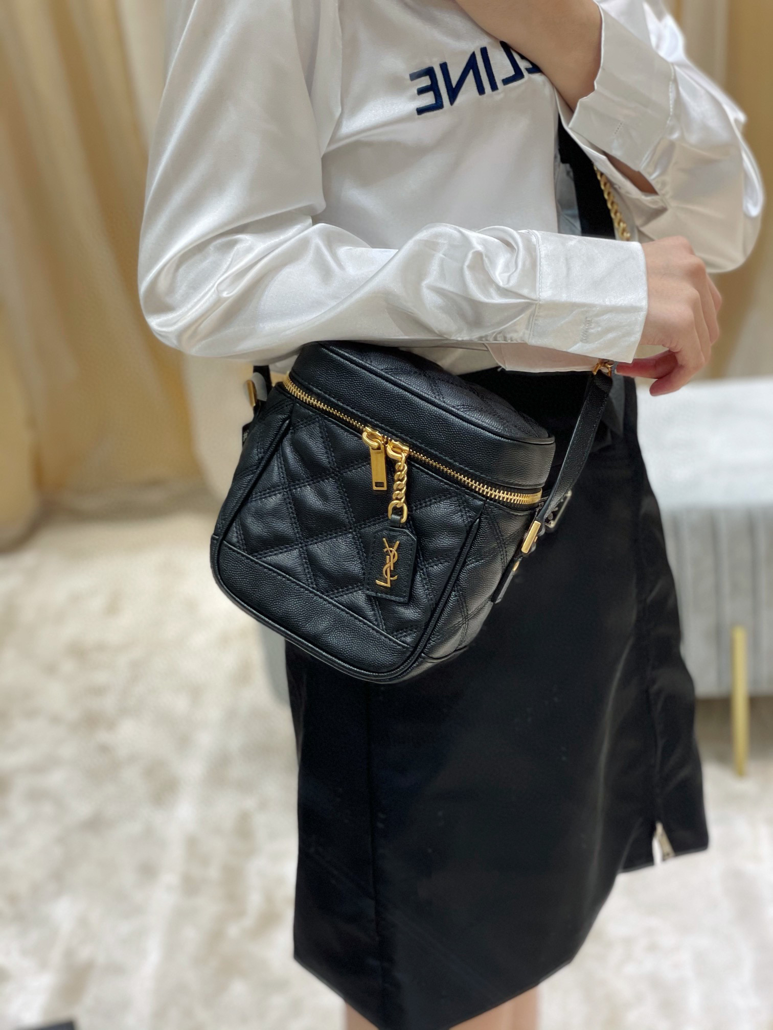 80’s Vanity是Y家推出的特别款,可爱的方形水桶化妆包造型加上环绕式的拉链,别致又有趣;采用进口原厂经典荔枝纹小牛皮,皮质非常好打理;简单的菱格纹路搭配精致的小logo,整体感觉是低调奢华又带有一点小复古的气息;包内有一卡袋,方便收纳卡片;可调节式肩带,适配不同小仙女的身高,相当值得入手的一款小可爱!p980