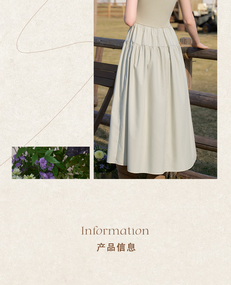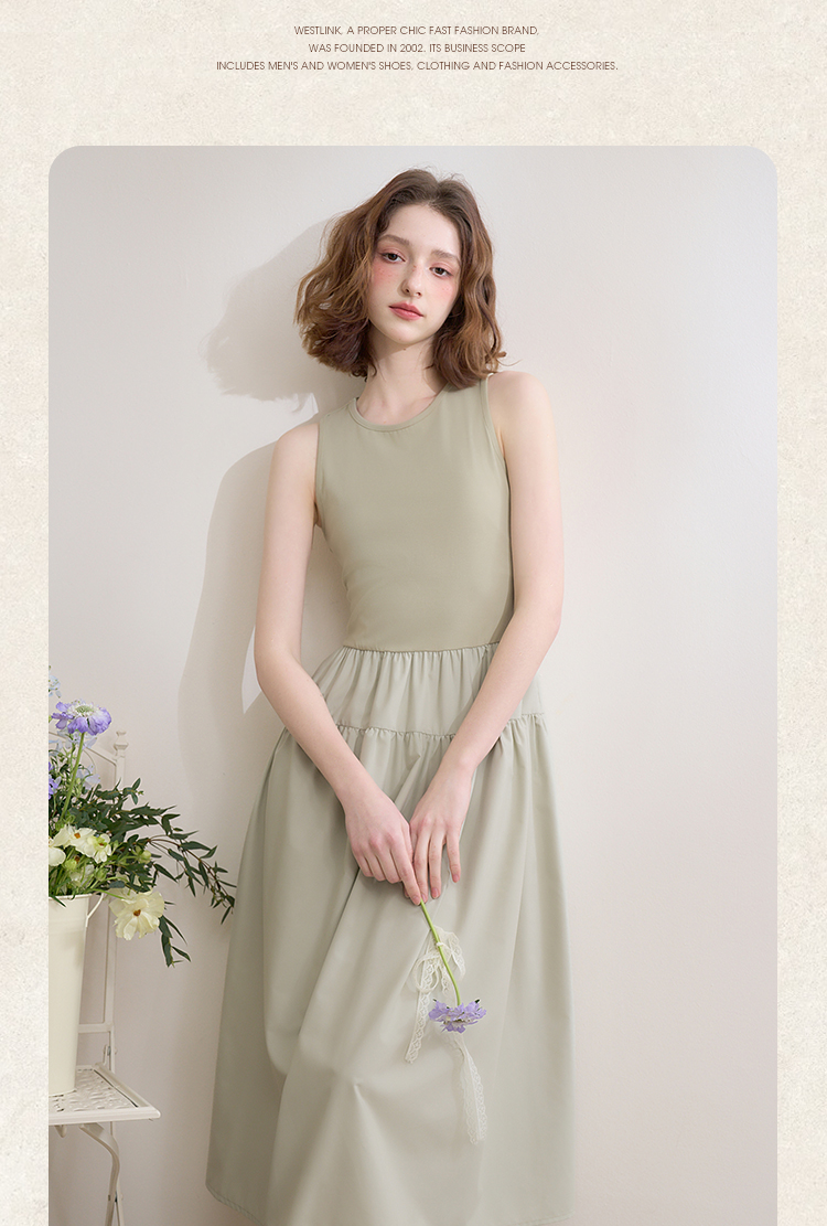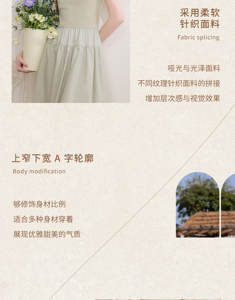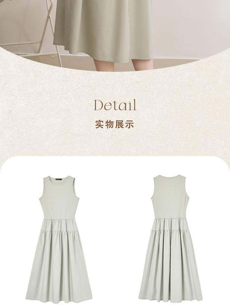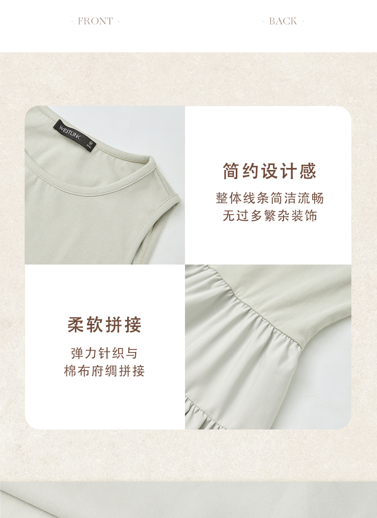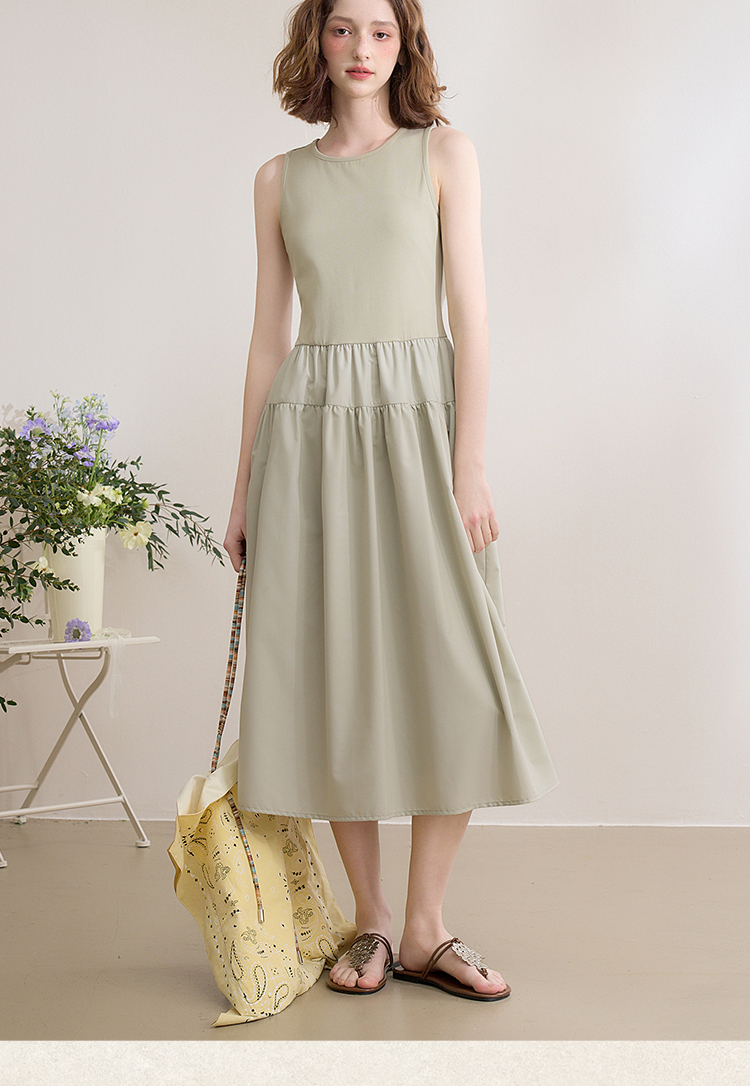 日系简约设计感柔软拼接针织背心裙女大裙摆连衣裙V0550201