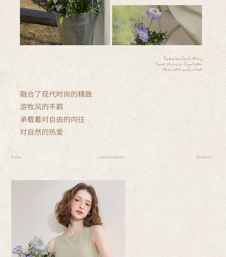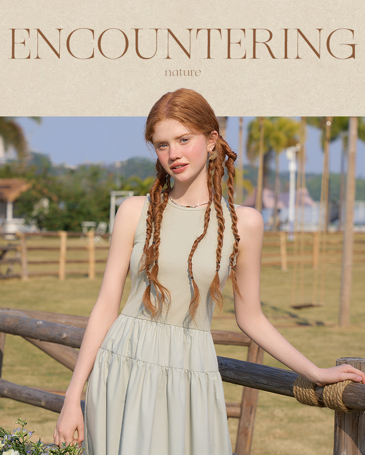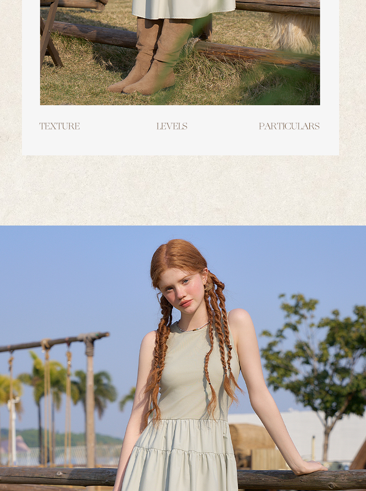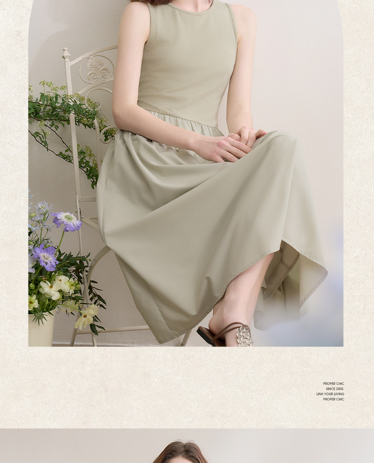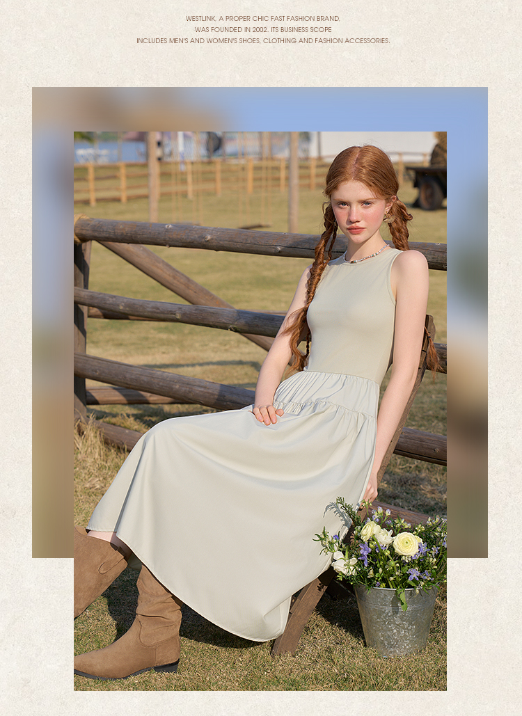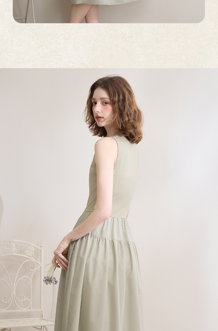 日系简约设计感柔软拼接针织背心裙女大裙摆连衣裙V0550201