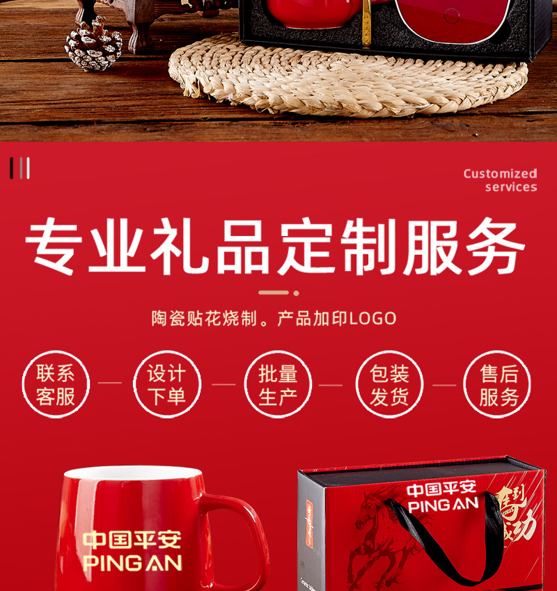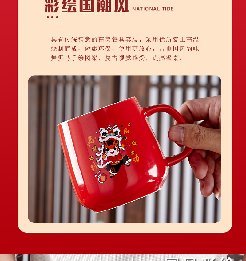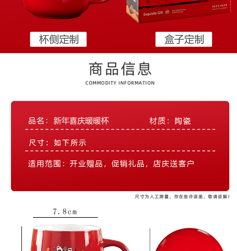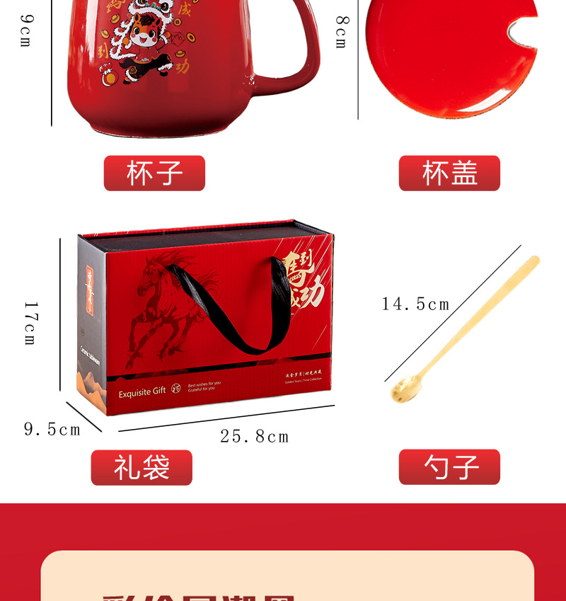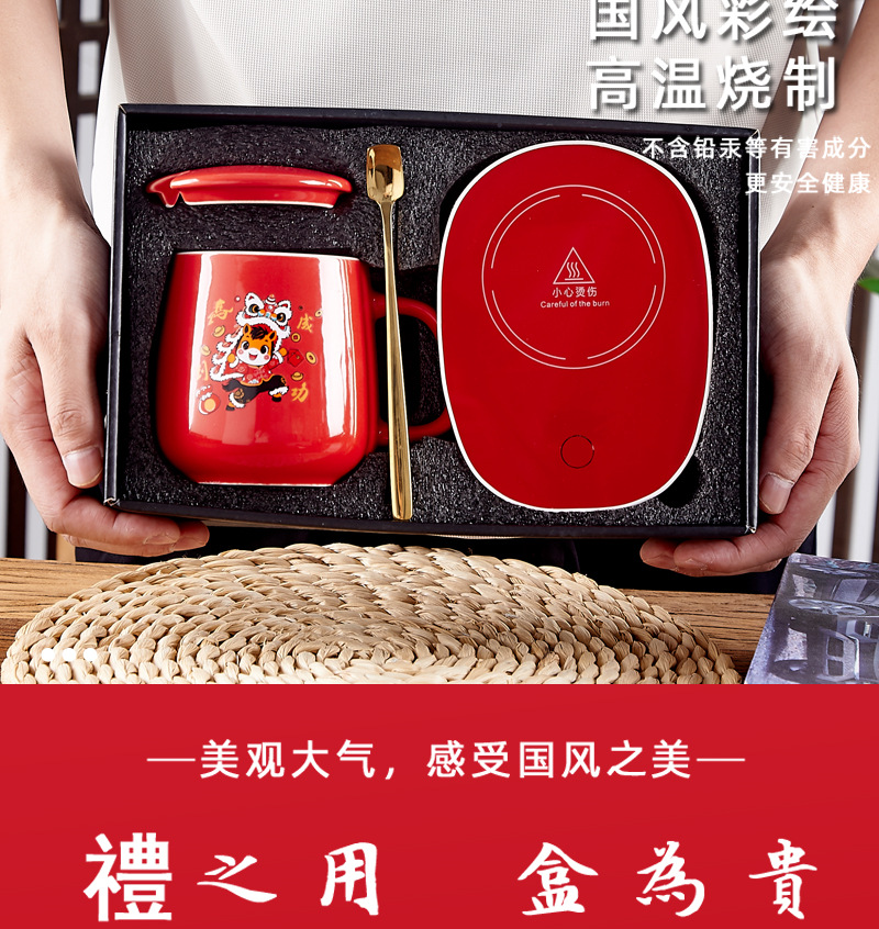 创意礼品 红色马年杯子 新年水杯恒温杯陶瓷杯礼盒 马克杯礼盒暖暖杯
