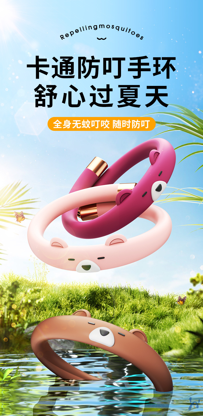 【孕婴可用,舒享甜蜜夏日】蚊虫叮咬,无处躲藏。手脚链全身防叮,神器保驾游玩。孕婴可用,放心护宝贝。卡通设计,萌趣加身。露营出游必备良品,让你舒心过夏天!