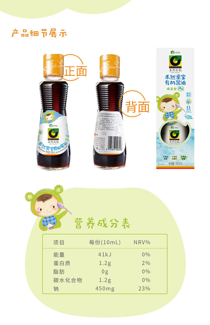 有机儿童酱油减盐型(调味)160ml 商品图2