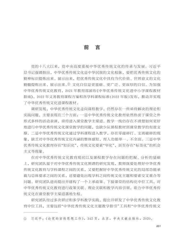 本书以中华优秀传统文化为切入点,以《义务教育课程方案(2022年版)》提出的“积极开展主题化、项目式学习等综合性教学活动”为政策指引,针对当前主题化研究较为薄弱,特别是政策走向实践缺少理论支撑和课例指导的现状,开展主题教学理论工具中位研究,搭建并阐释中华优秀传统文化从课程教材走向学科主题教学的理论框架,并在主题教学理论工具引领下,开展义务教育阶段中华优秀传统文化精品课例教学研究。本书融通理论与实践,系统解决中华优秀传统文化融入课程教学最后一公里问题,为其他重大主题教学融入课程教学提供理论支撑和课例指导。