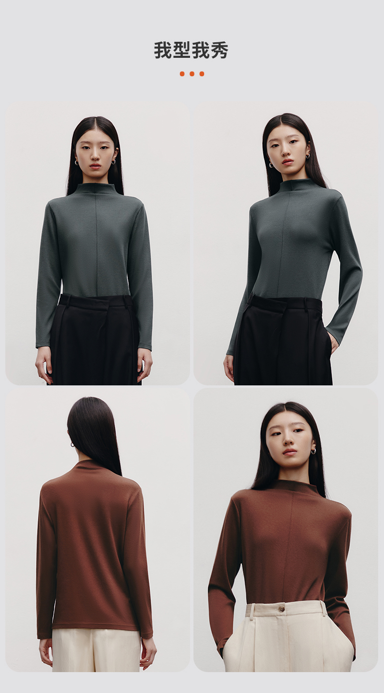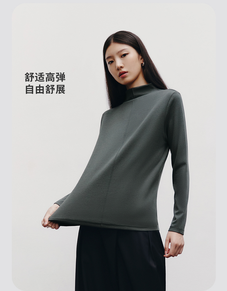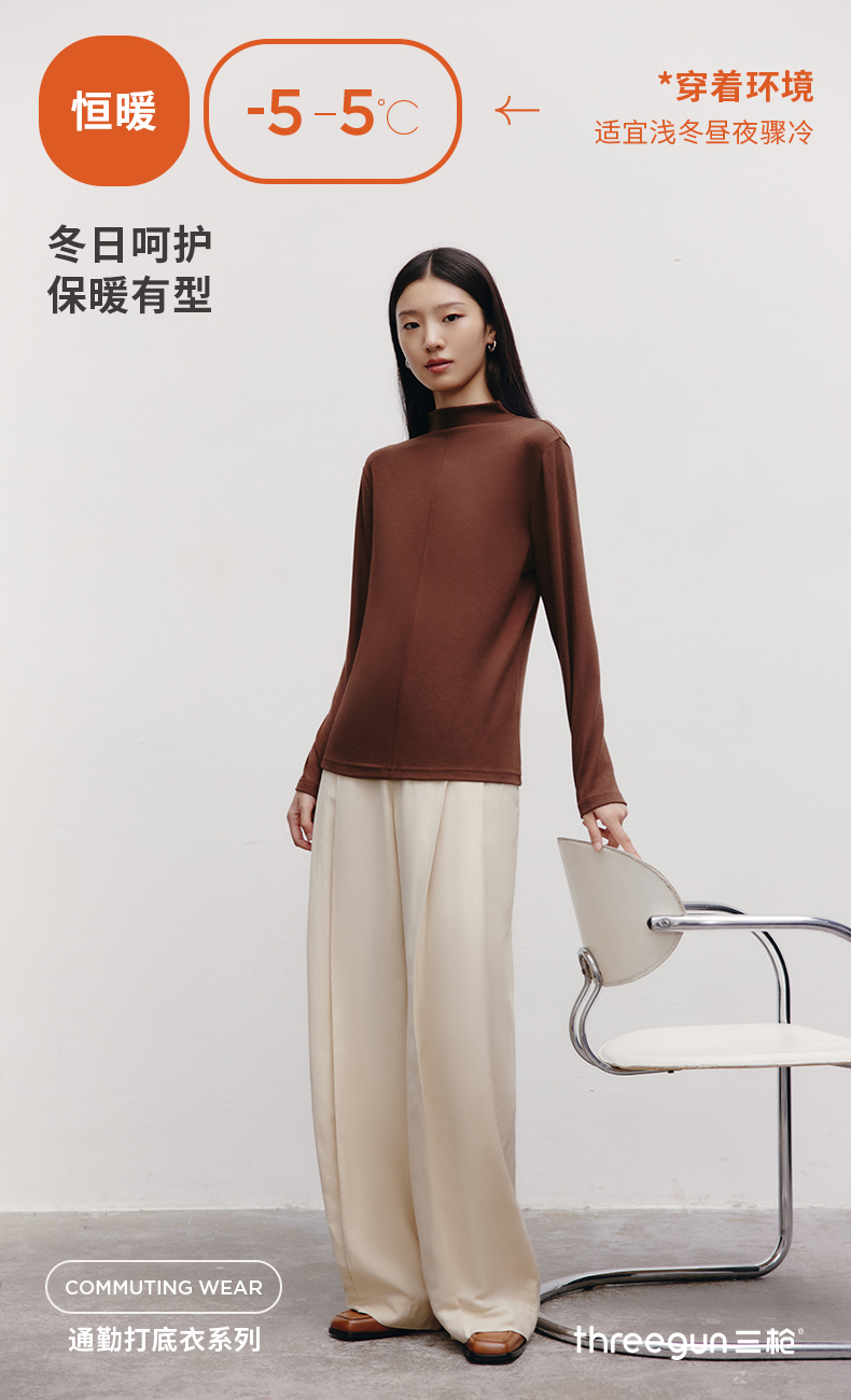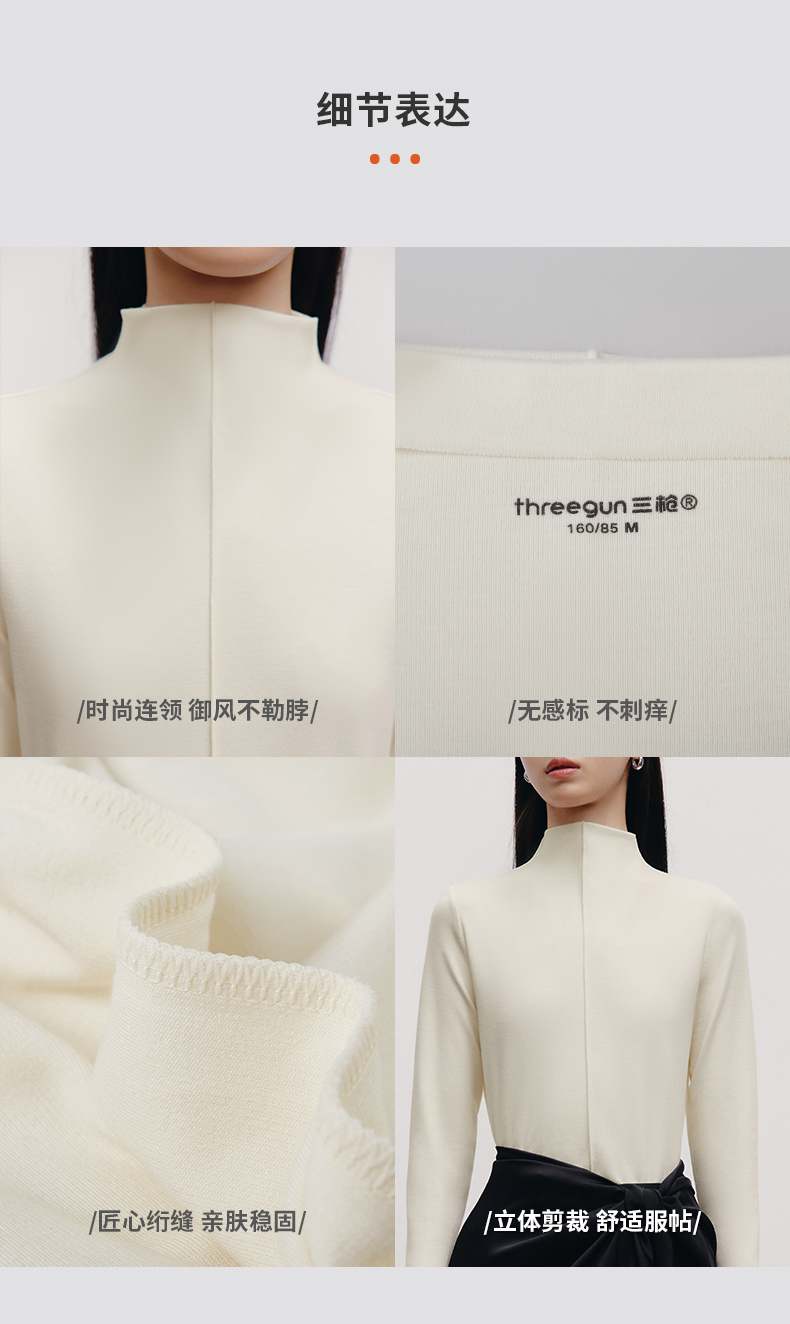 Threegun三枪 【爽滑密棉】连领女士长袖上衣打底衫-23952A011