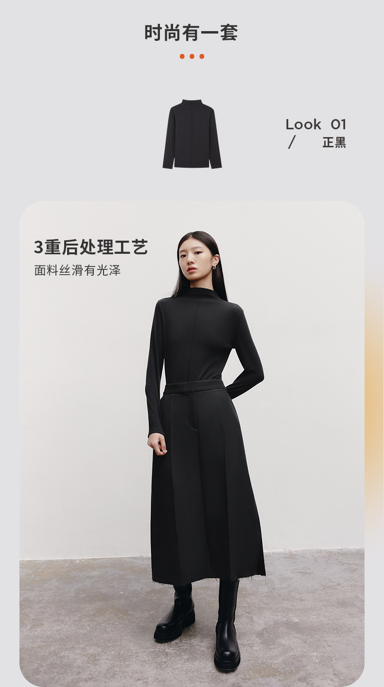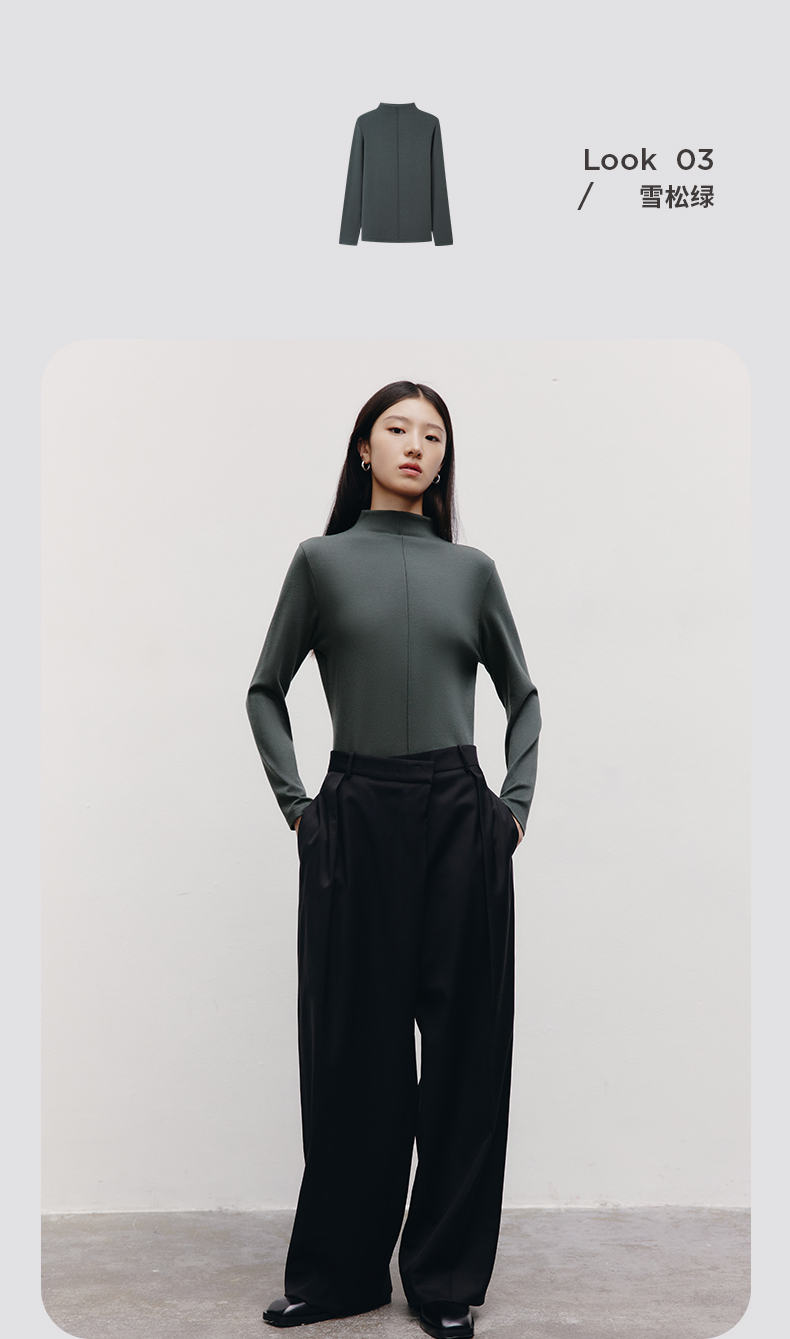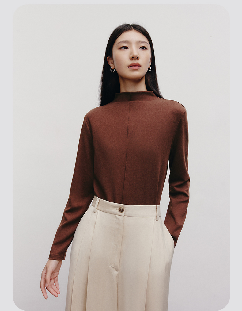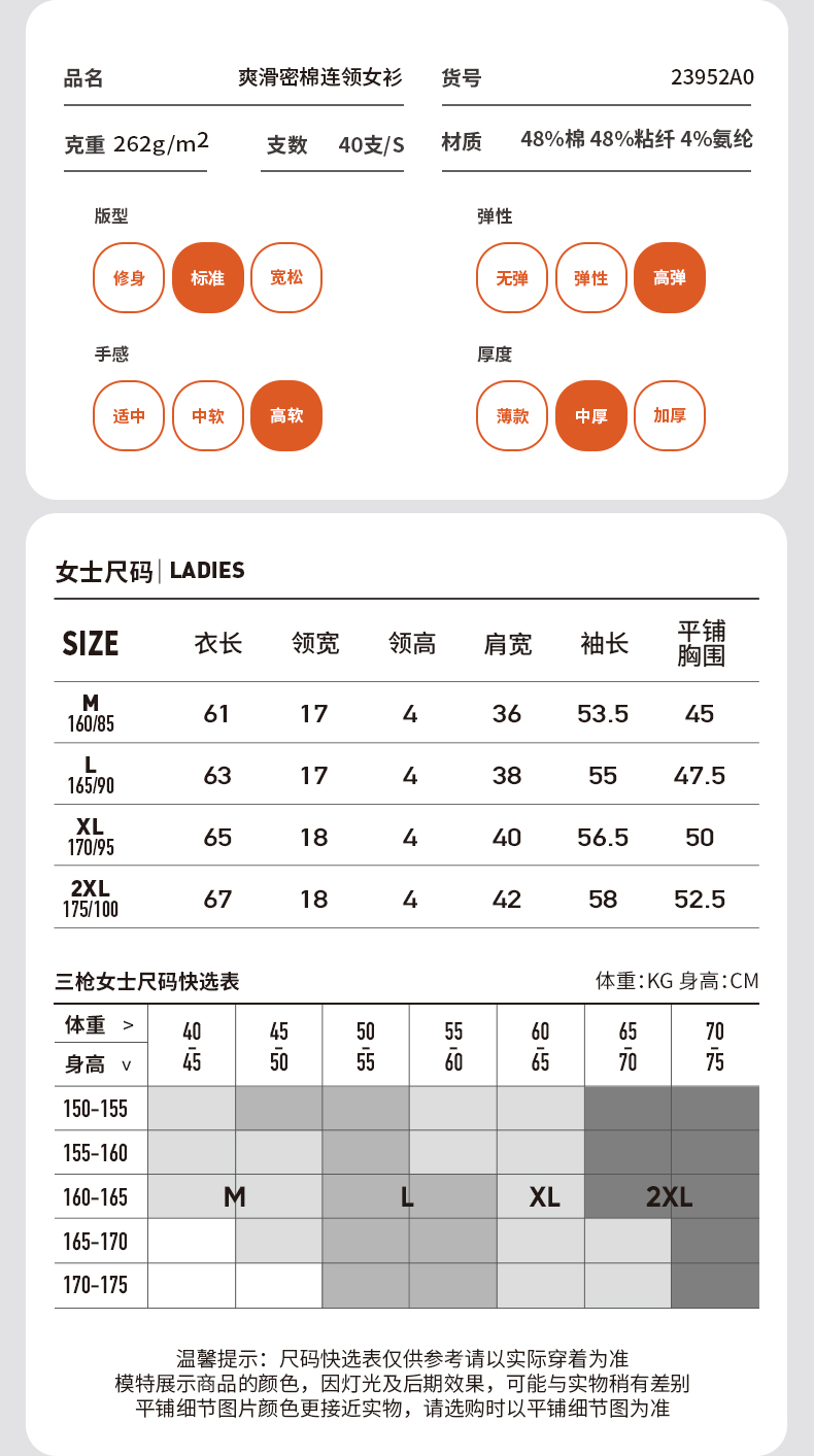 Threegun三枪 【爽滑密棉】连领女士长袖上衣打底衫-23952A011