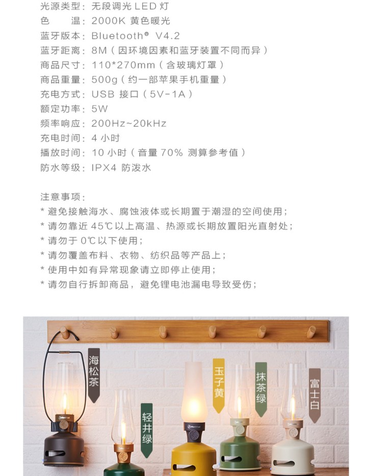【100代金券】MoriMori 煤油灯蓝牙音箱 USB充电音响灯小夜灯[福利品]