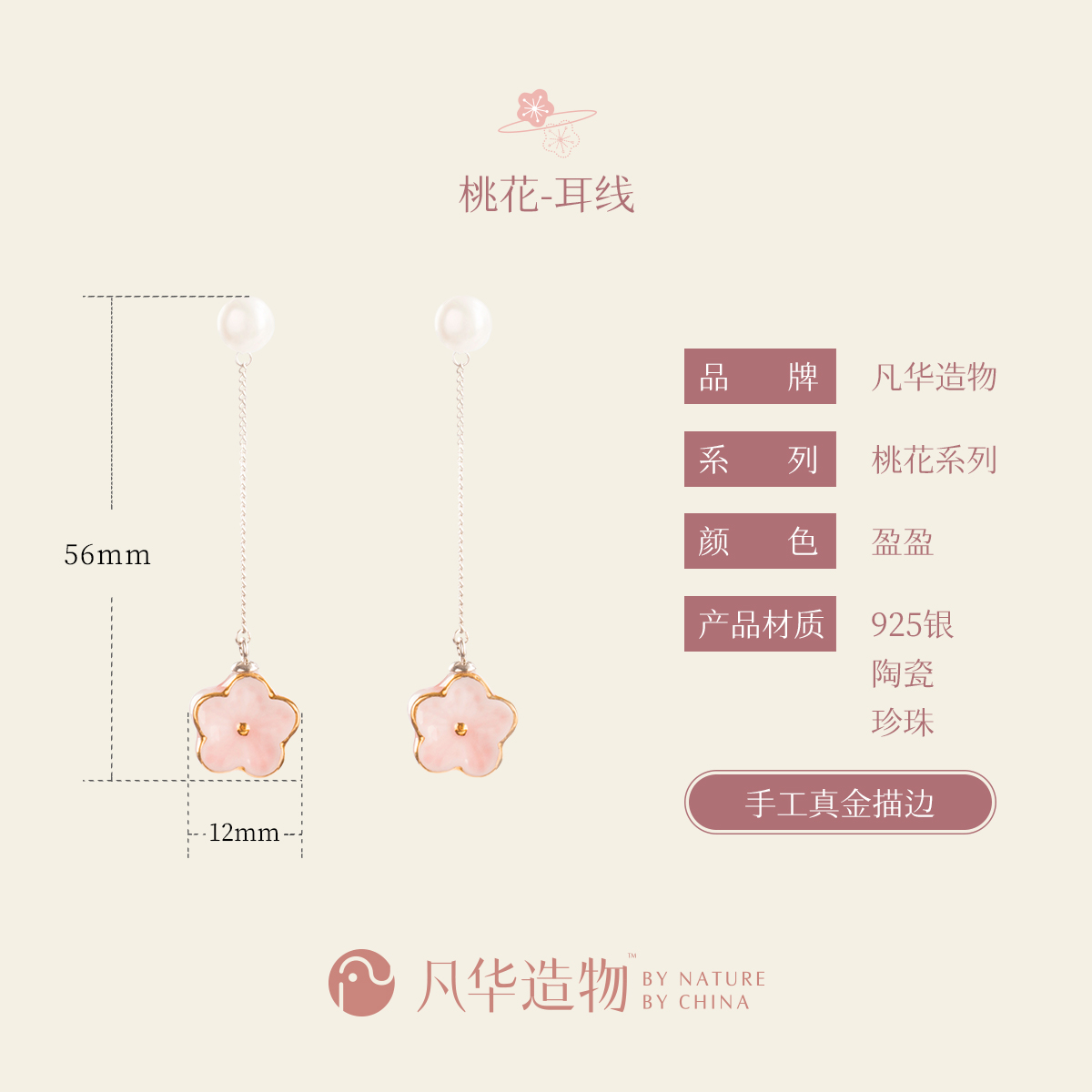 凡华造物桃之夭夭925银耳钉女气质高级珍珠耳环小众设计感耳饰 爱情花语桃之夭夭925银珍珠耳钉(长款)