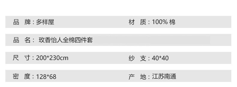 【专柜多样屋】-玫香怡人全棉四件套/200*230cm/SW