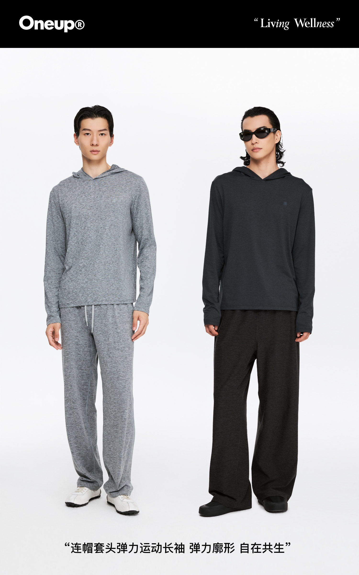 oneup连帽套头弹力运动长袖