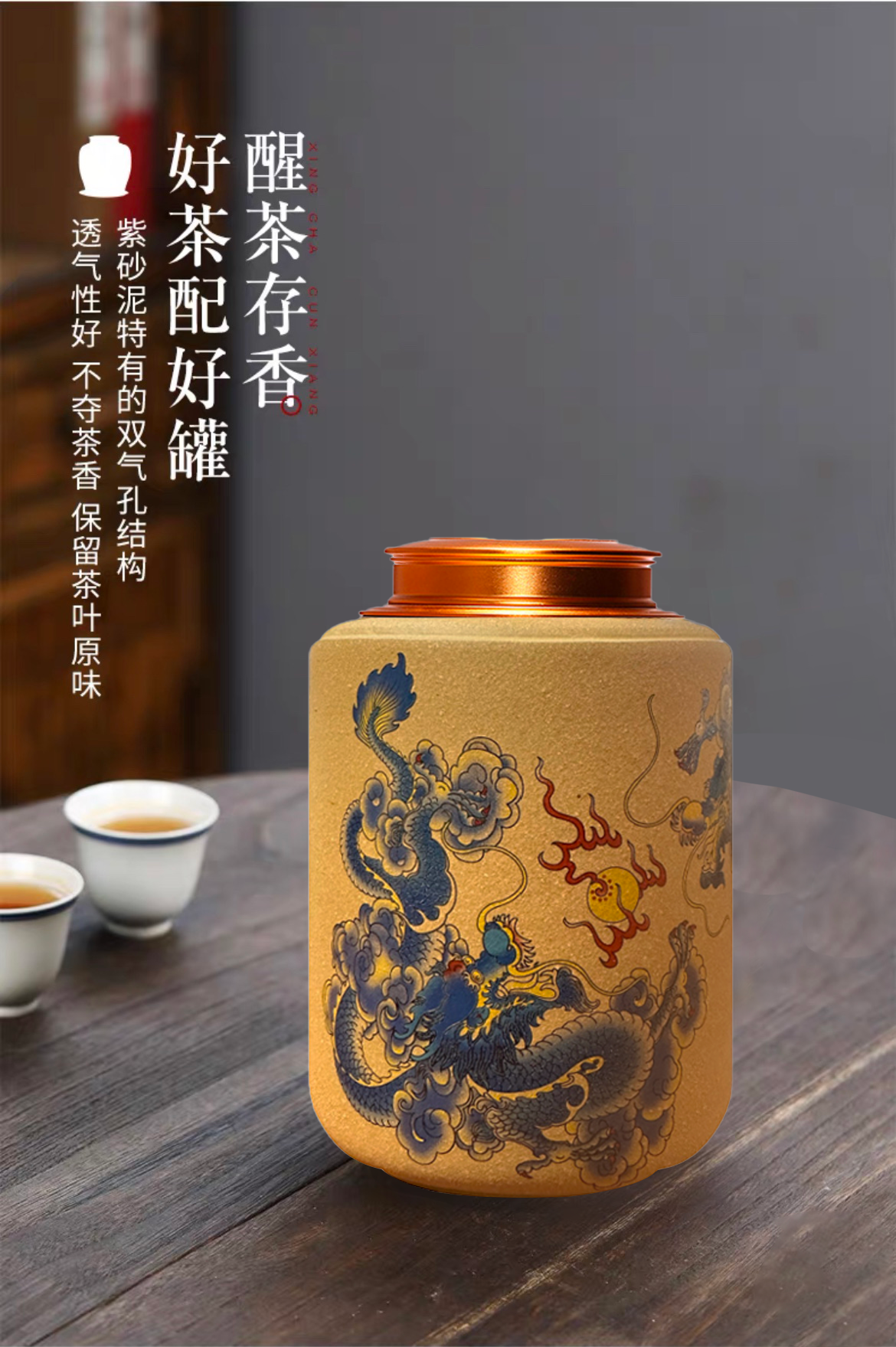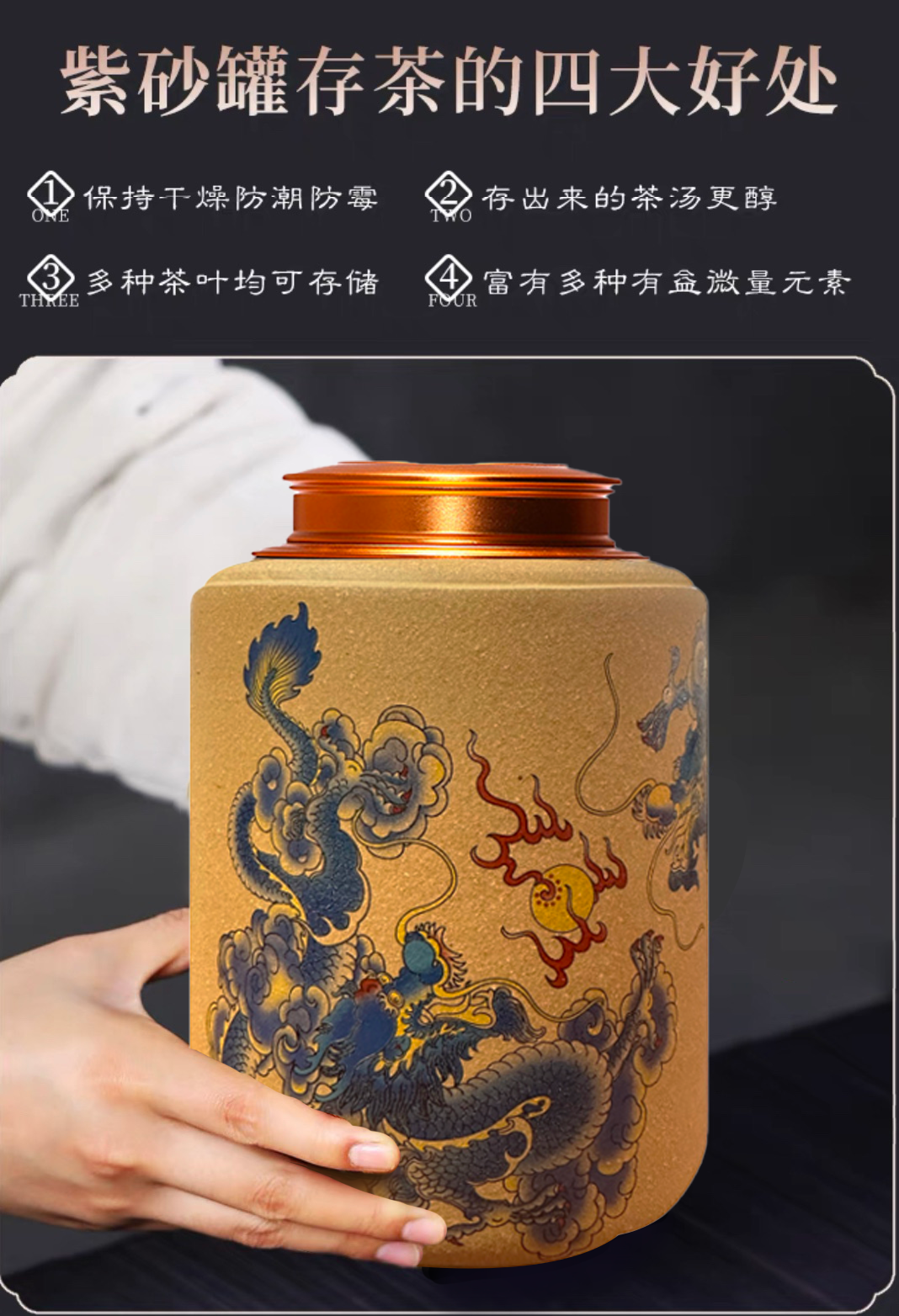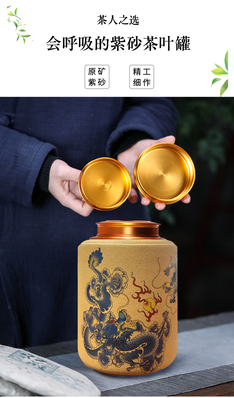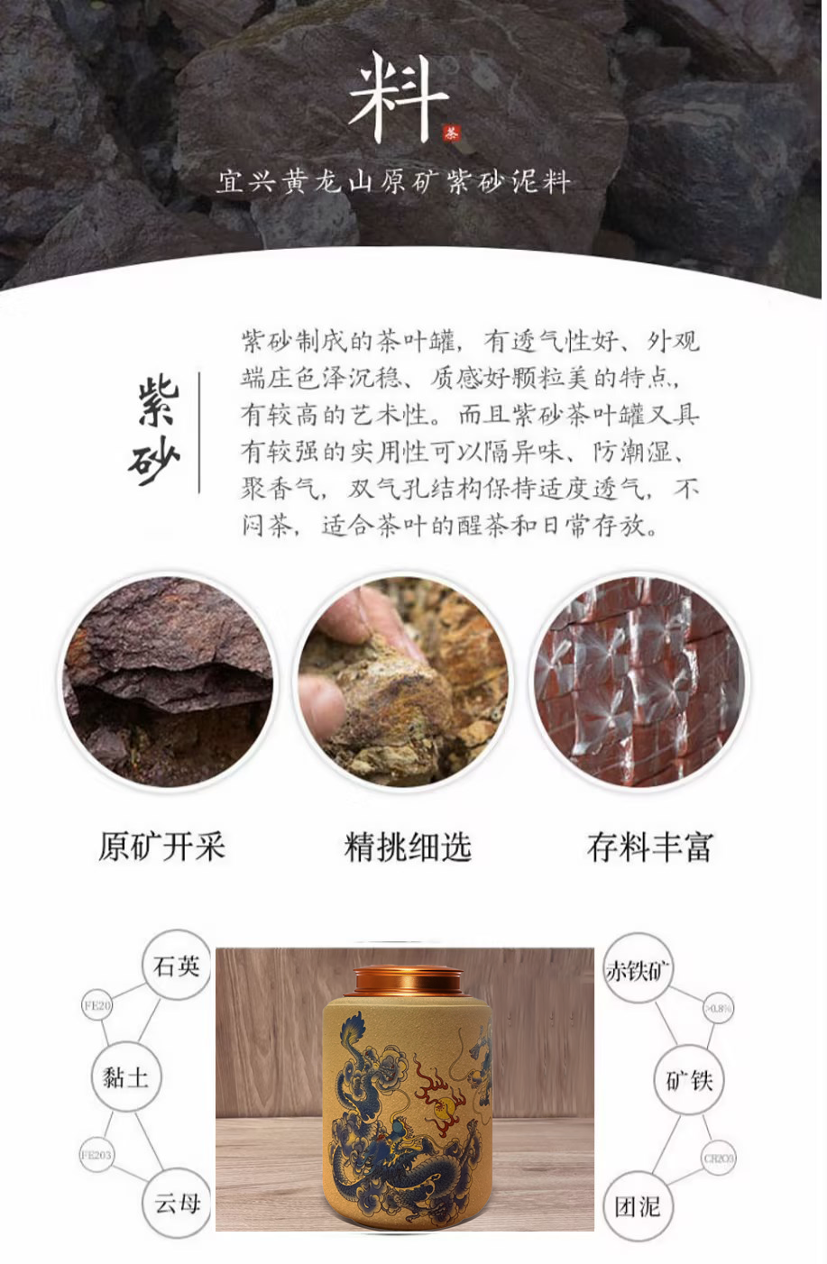 智慧-宜兴紫砂普洱醒茶罐大号一斤装锡盖普洱茶罐福禄双兔茶叶罐(500ml)家用散茶罐