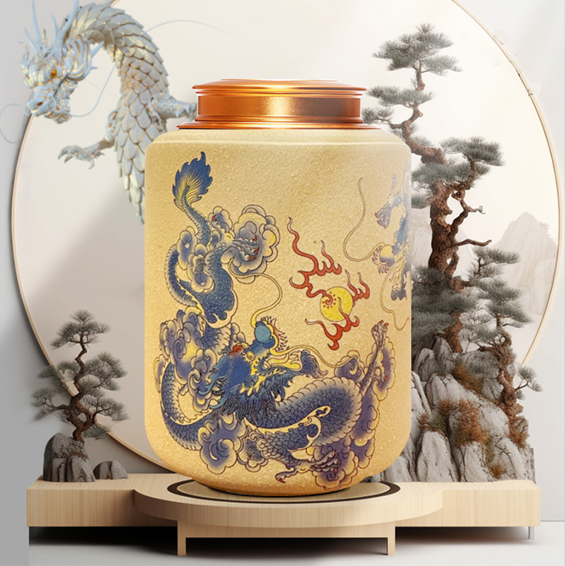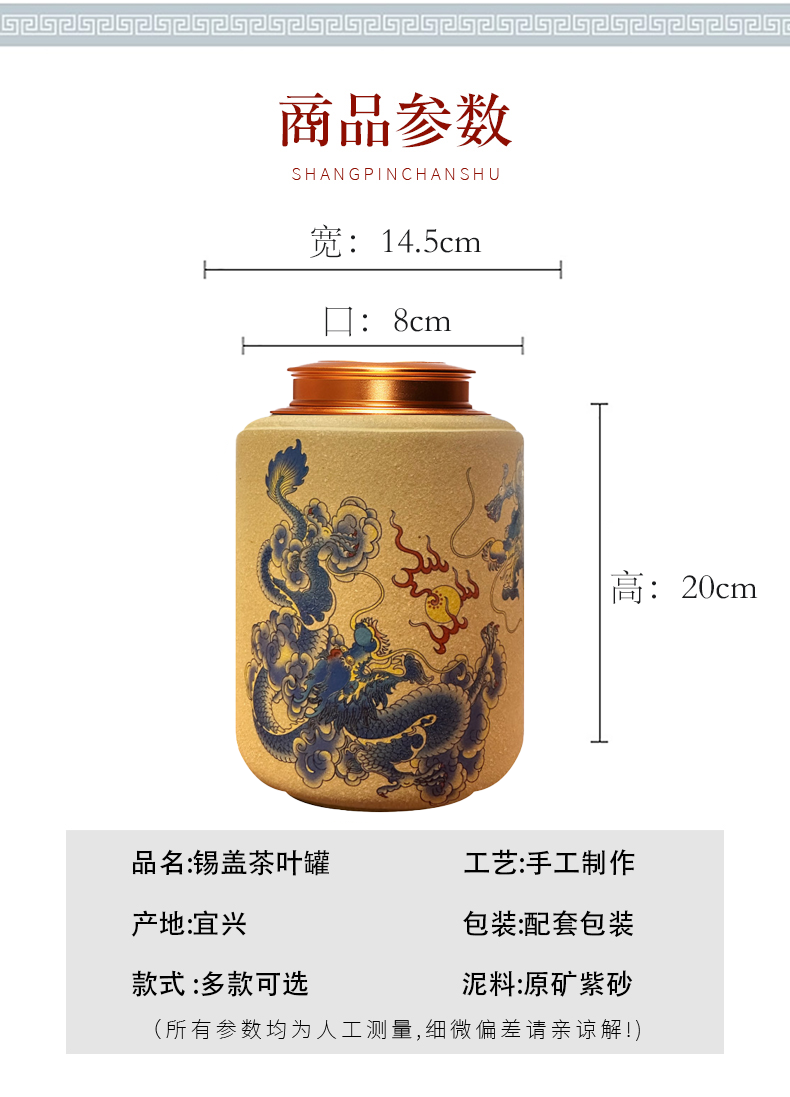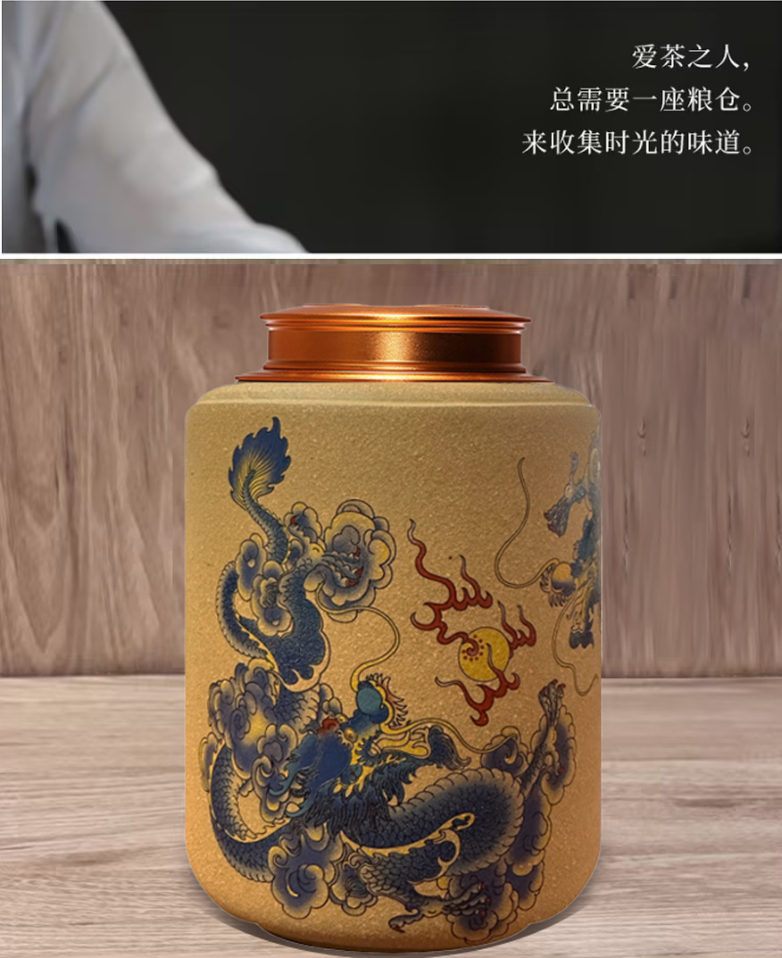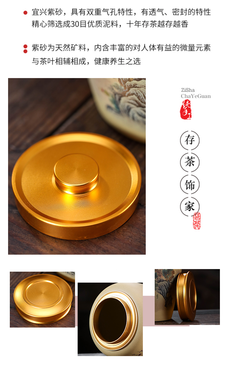 智慧-宜兴紫砂普洱醒茶罐大号一斤装锡盖普洱茶罐福禄双兔茶叶罐(500ml)家用散茶罐