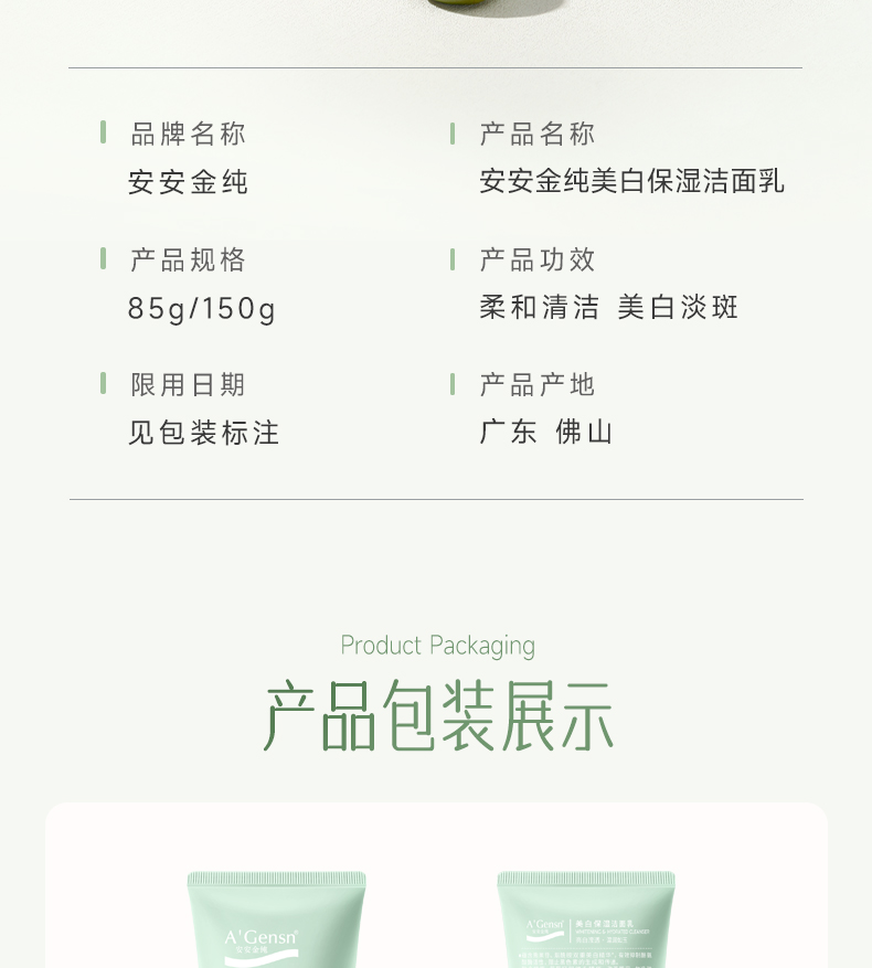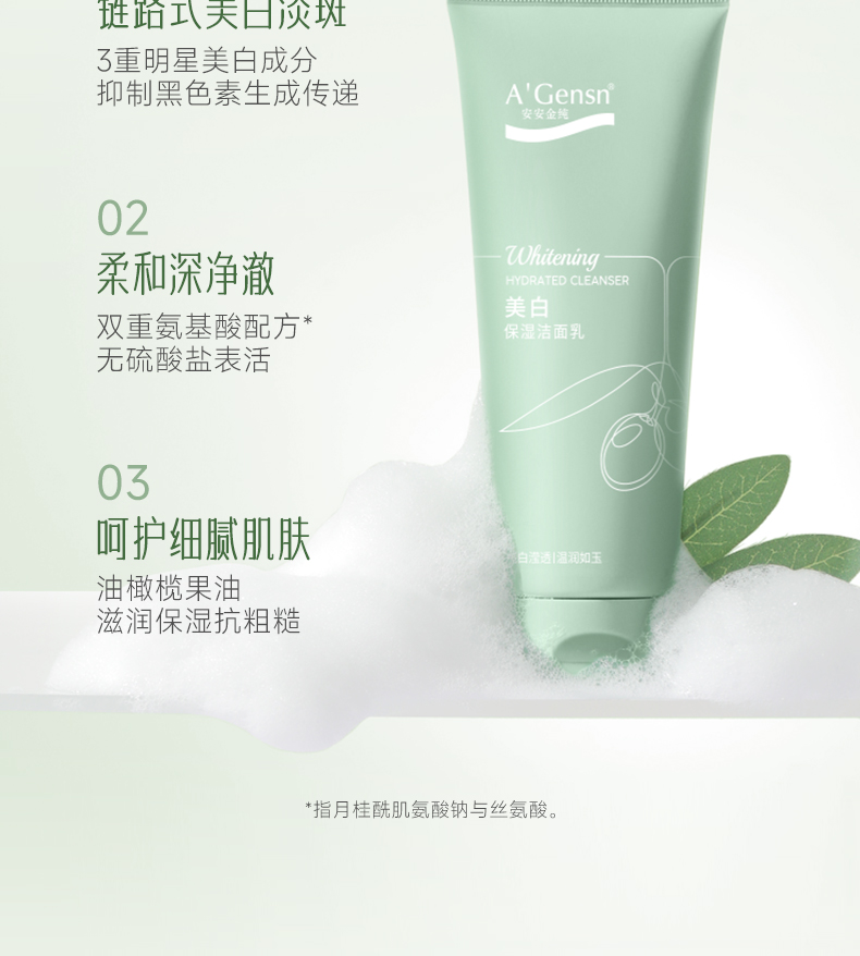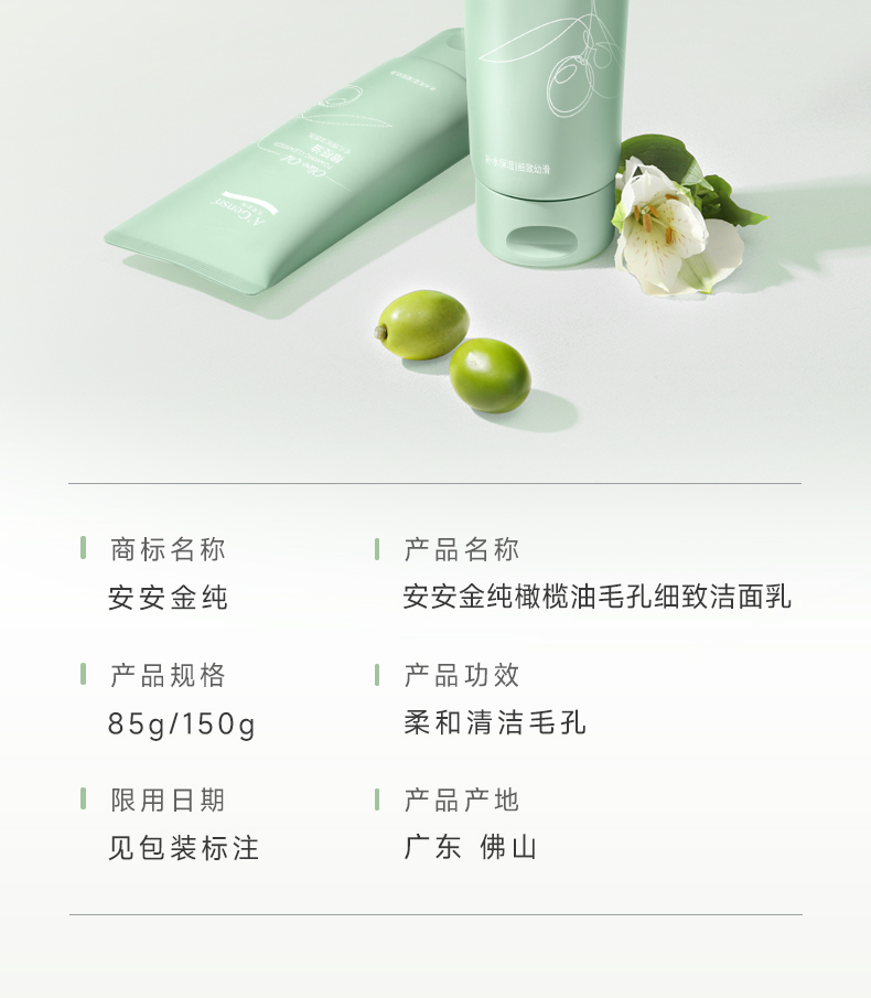 安安金纯橄榄油毛孔细致/美白保湿洁面乳85g*3支装【龙菲精选】