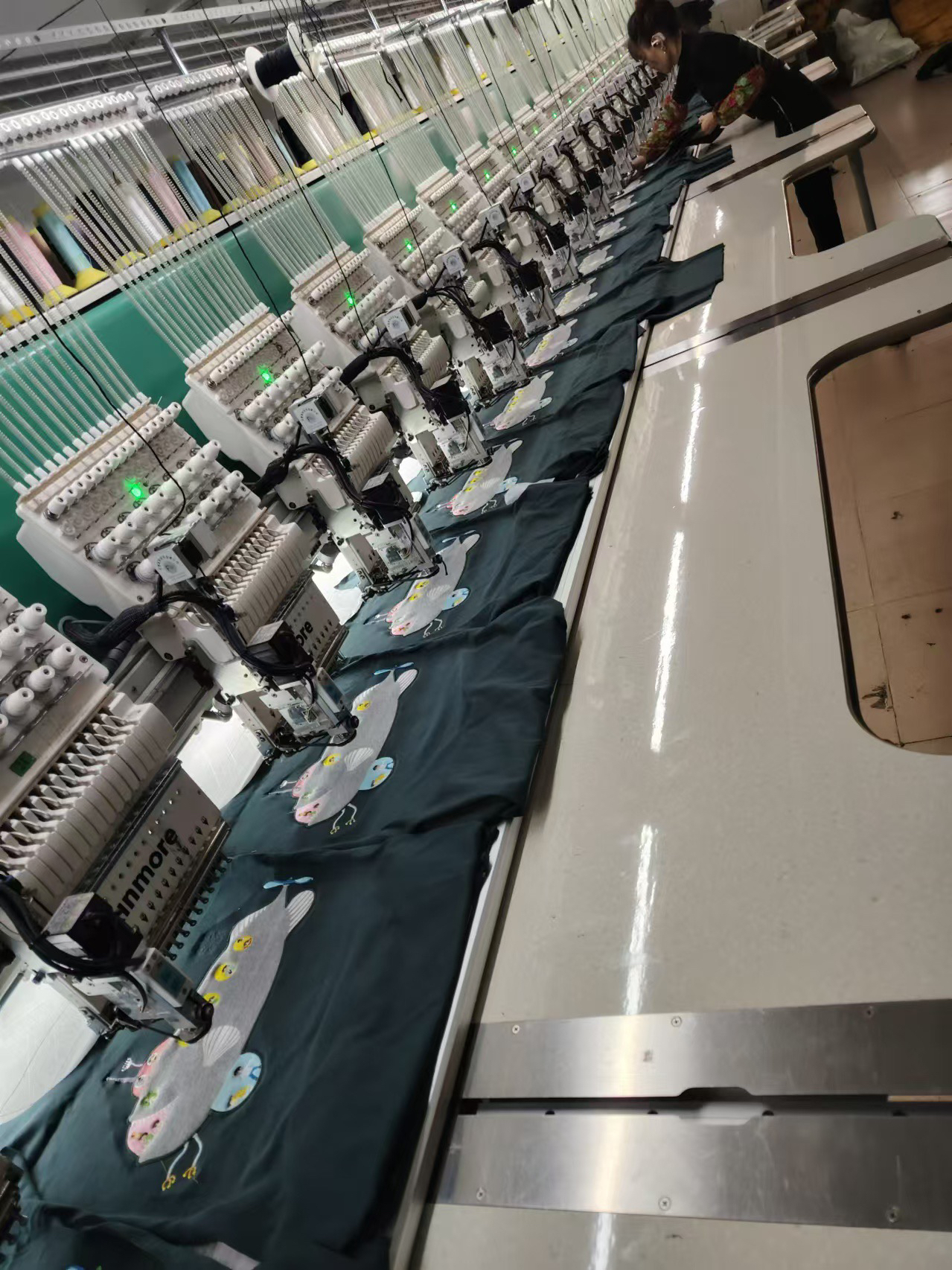 生产线|使用多种颜色印花图案及绣线进行拼接和组合,创造出丰富多彩的图案效果