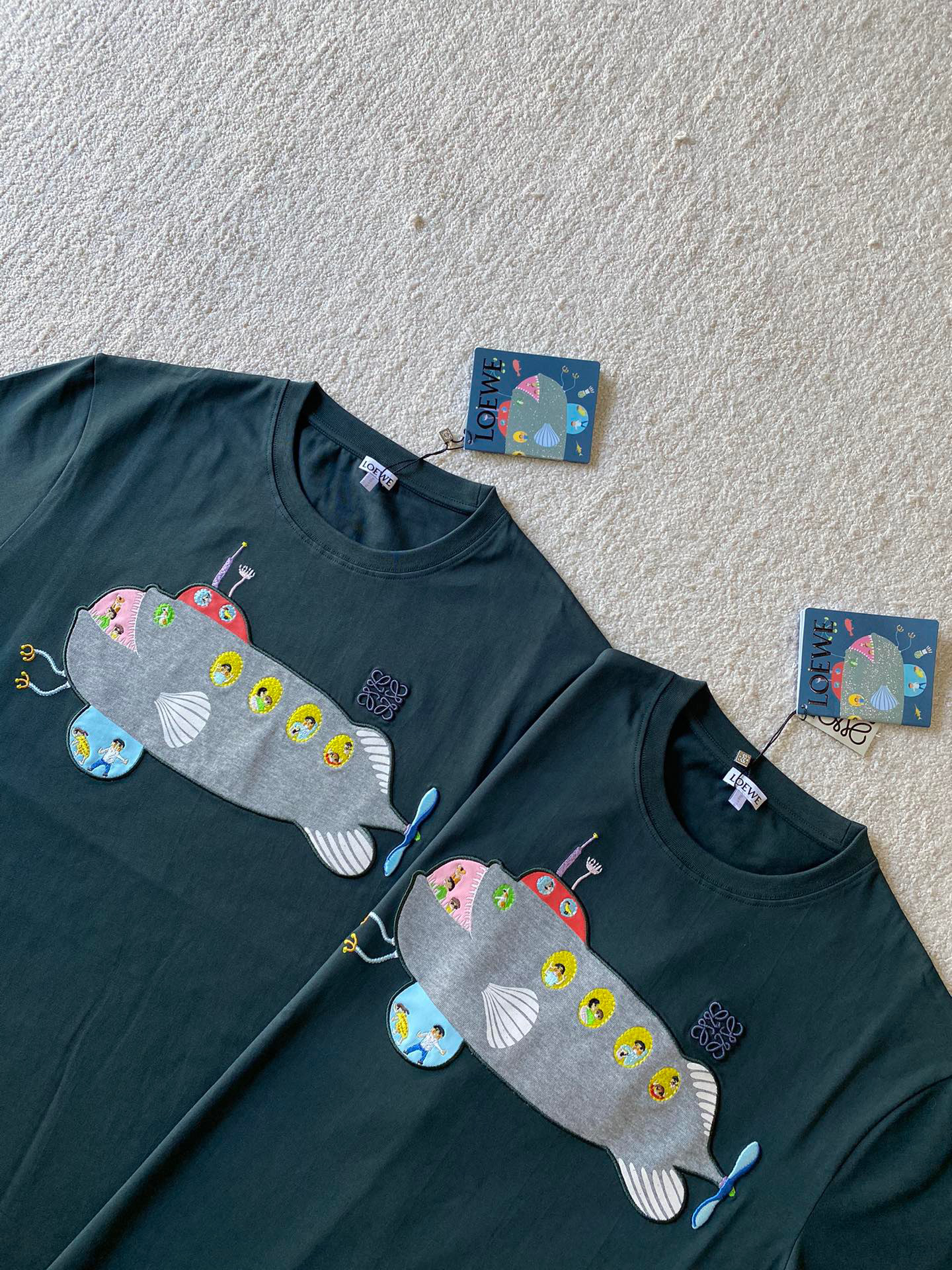 ⚠️原¥5,800购买;轻盈棉质面料、正面饰有潜水艇印花和刺绣贴片、搭配 Anagram 刺绣、宽松版型、标准长度、圆领设计、联名辅料配备