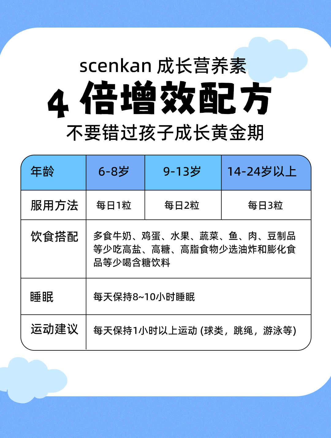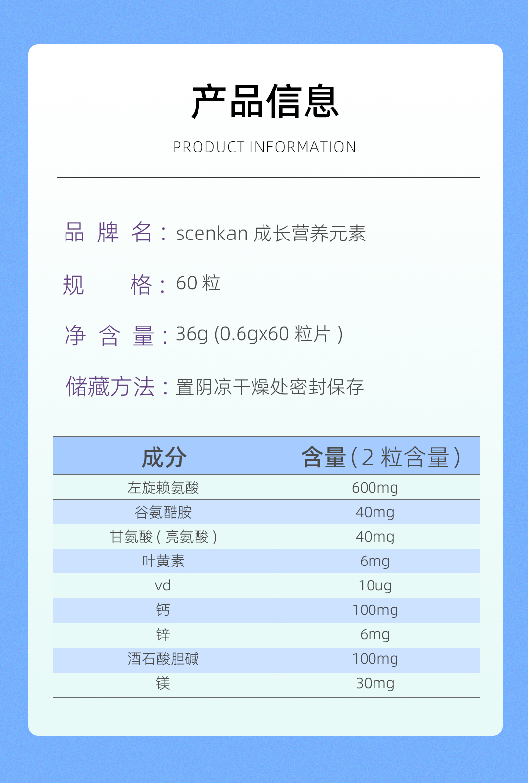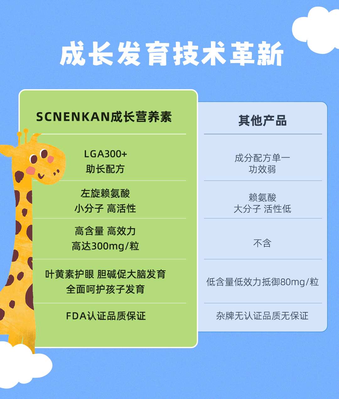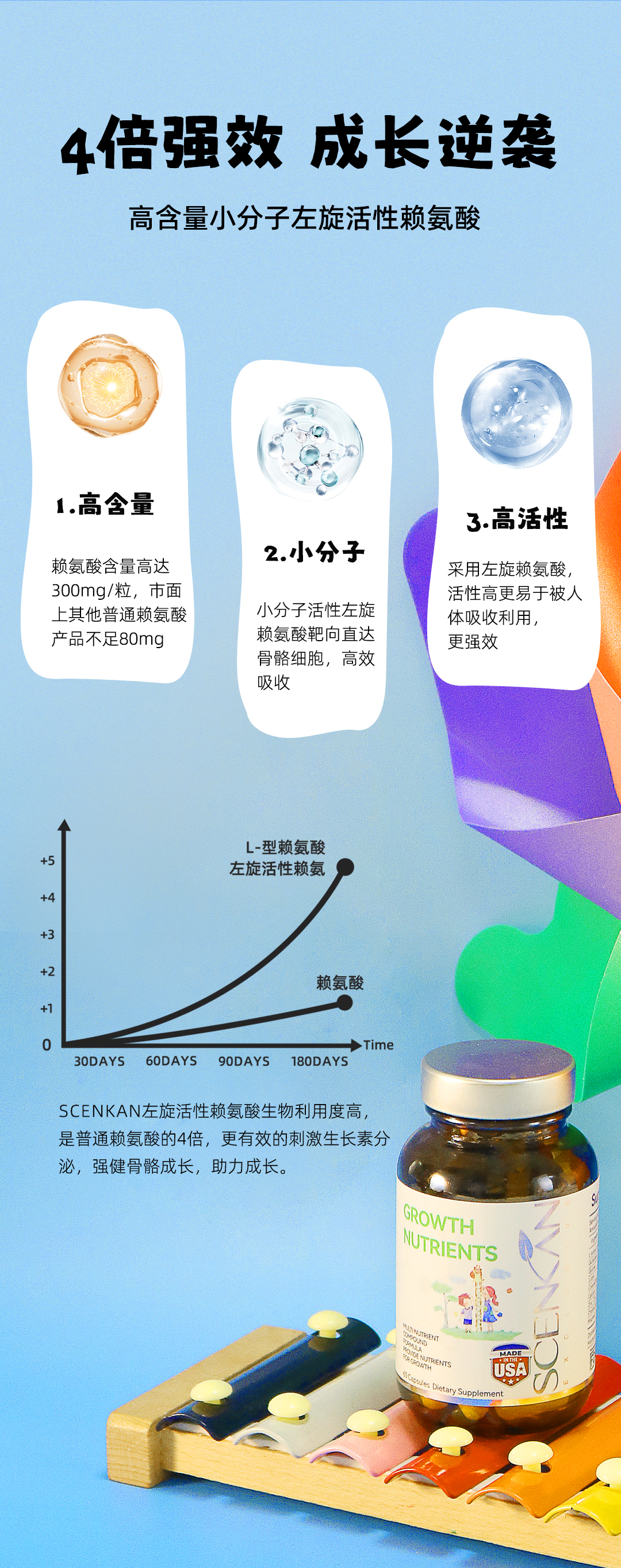 【scenkan生长素】成长赖氨酸补钙儿童青少年成长钙镁片4倍成长效力 LGA300+助长配方