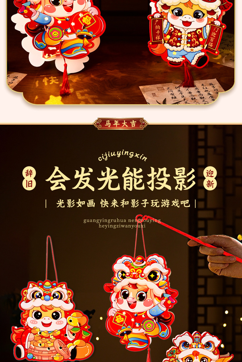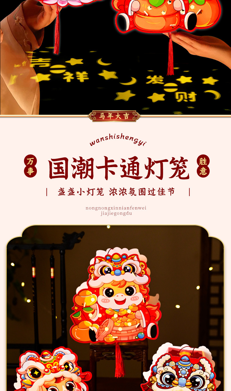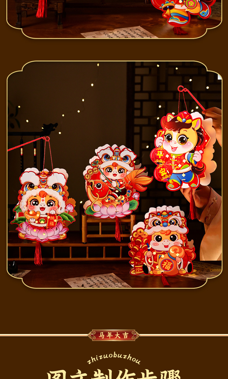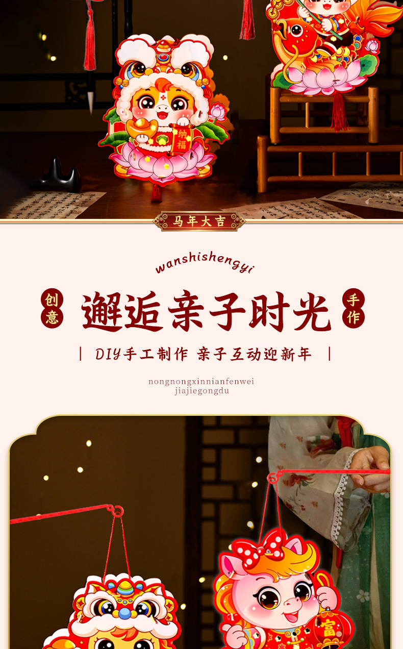 「9.9到手!数款可选」新年春节灯笼卡通马灯笼手工diy儿童制作材料包卡通马年花灯玩具