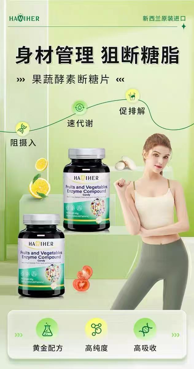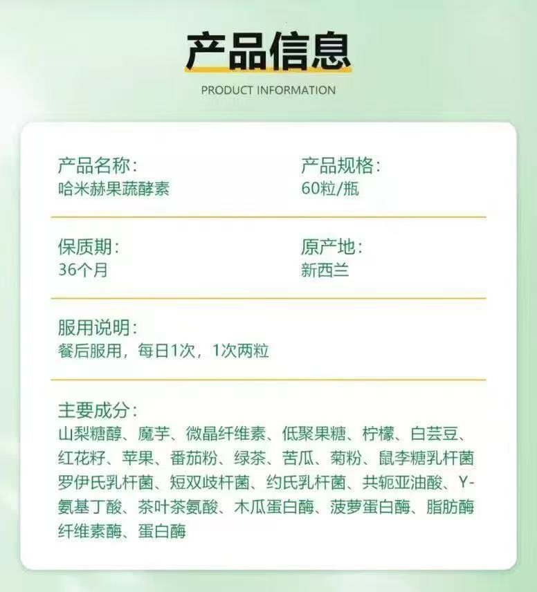 【品名】哈米赫果蔬酵素复合压片糖果48g(0.8g*60片)