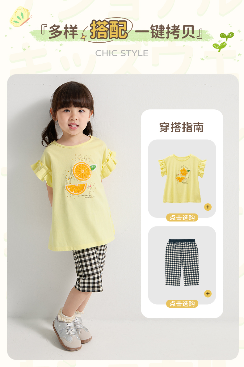 千趣会童装夏款女童少女蝴蝶结装饰甜美可爱透气短裤裤子中裤