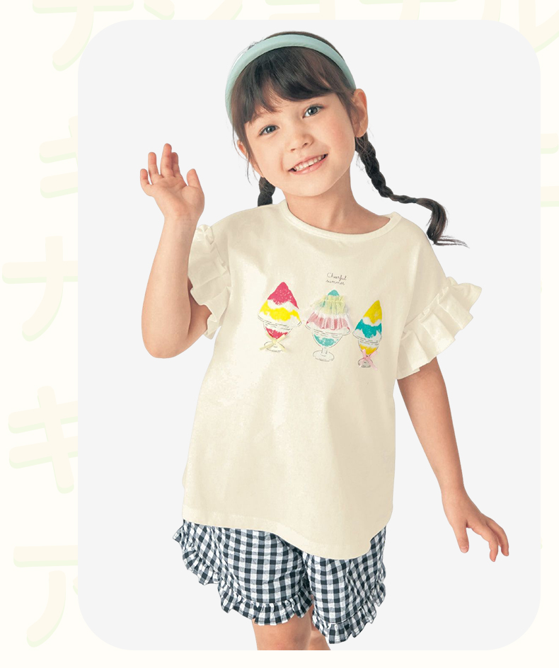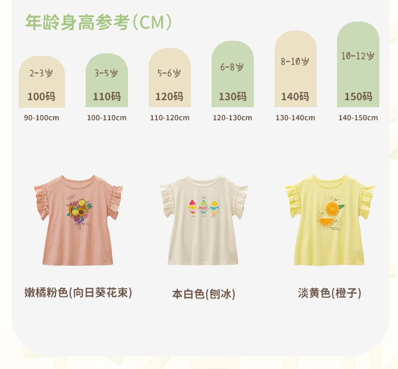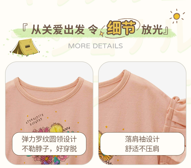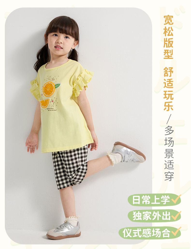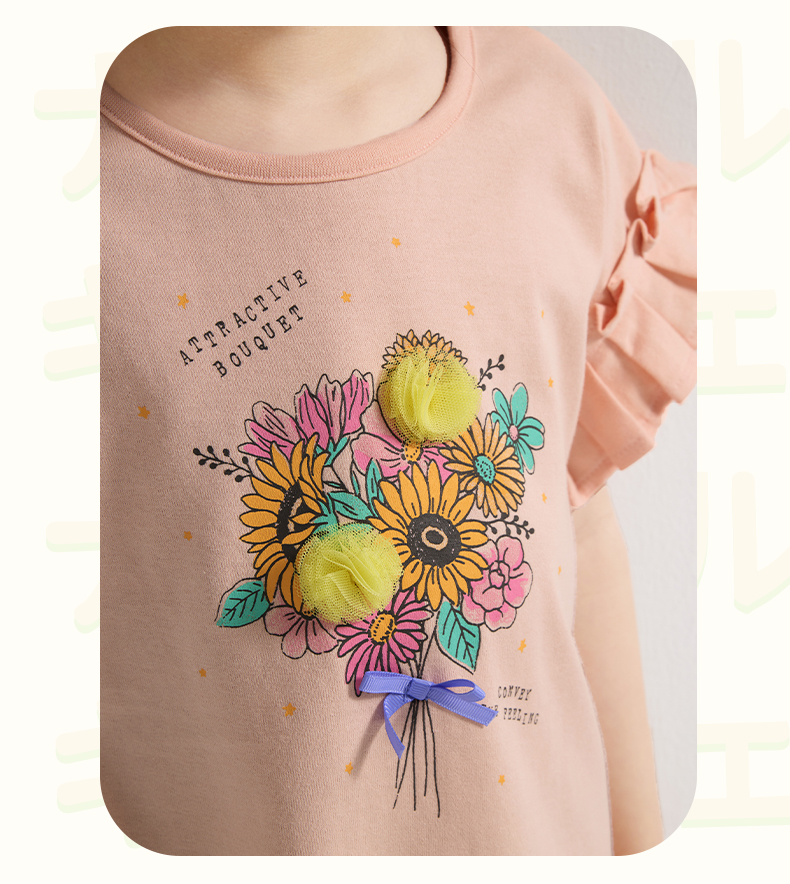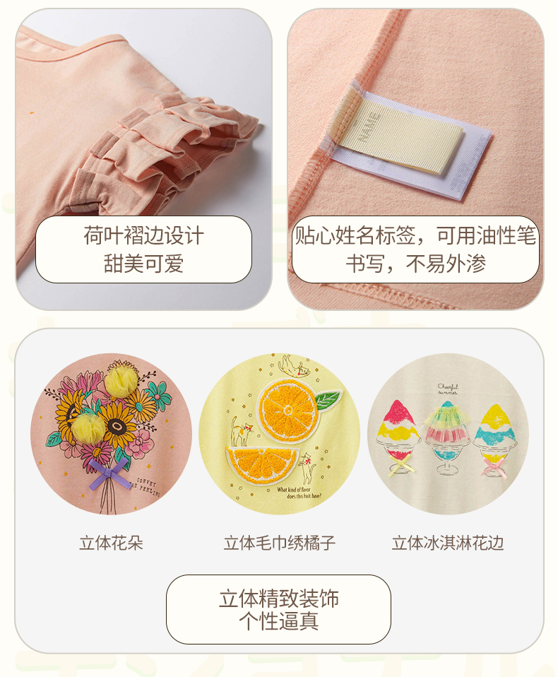 千趣会童装夏女童甜美印花立体装饰连肩袖短袖棉质T恤