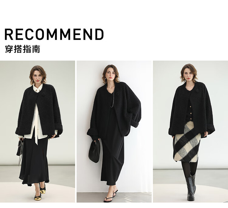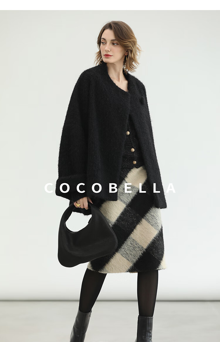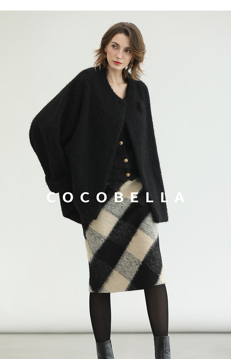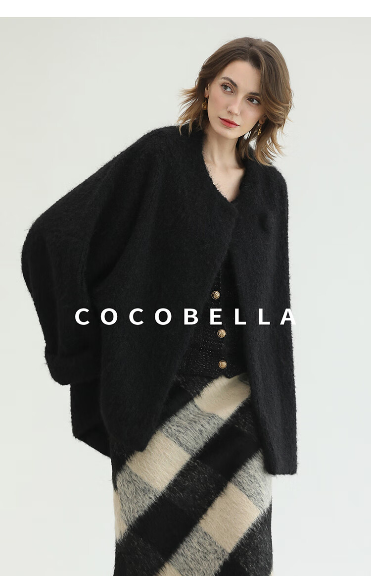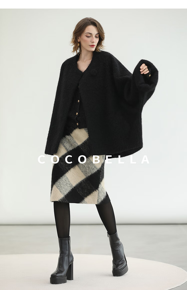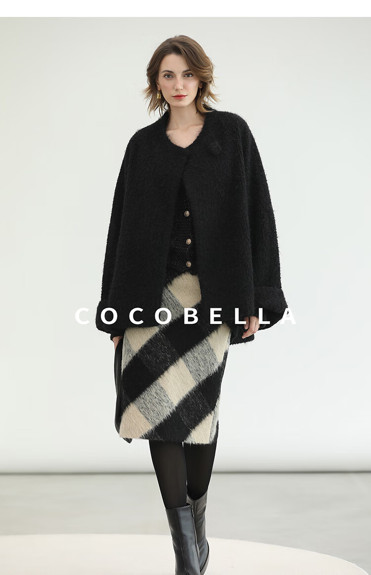 COCOBELLA通勤仿羊驼长绒大衣女宽松休闲斗篷毛呢外套WL3218