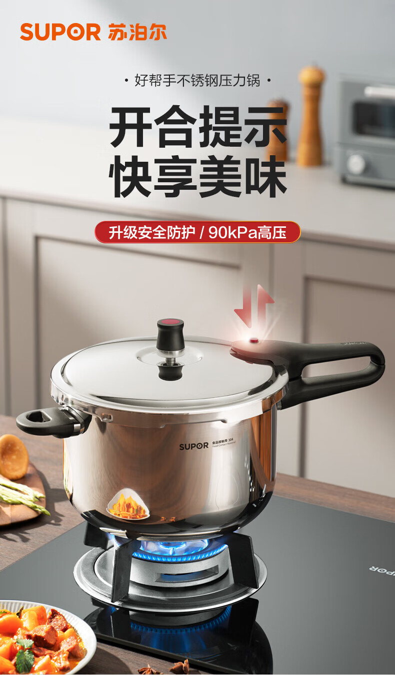 苏泊尔(SUPOR)高压锅304不锈钢家用压力锅磁炉明火通用复底加厚大容量高压锅 YW223JA1