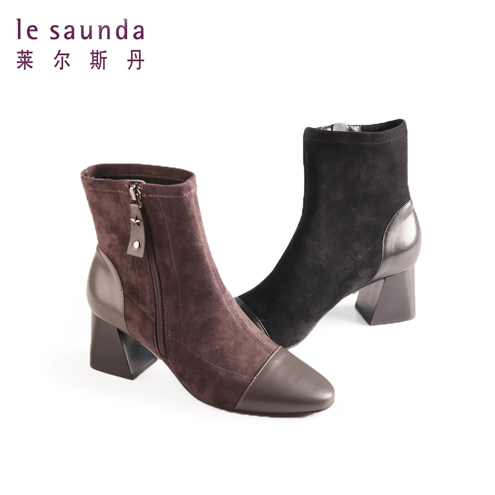 莱尔斯丹英伦风瘦瘦粗跟短靴1T68806