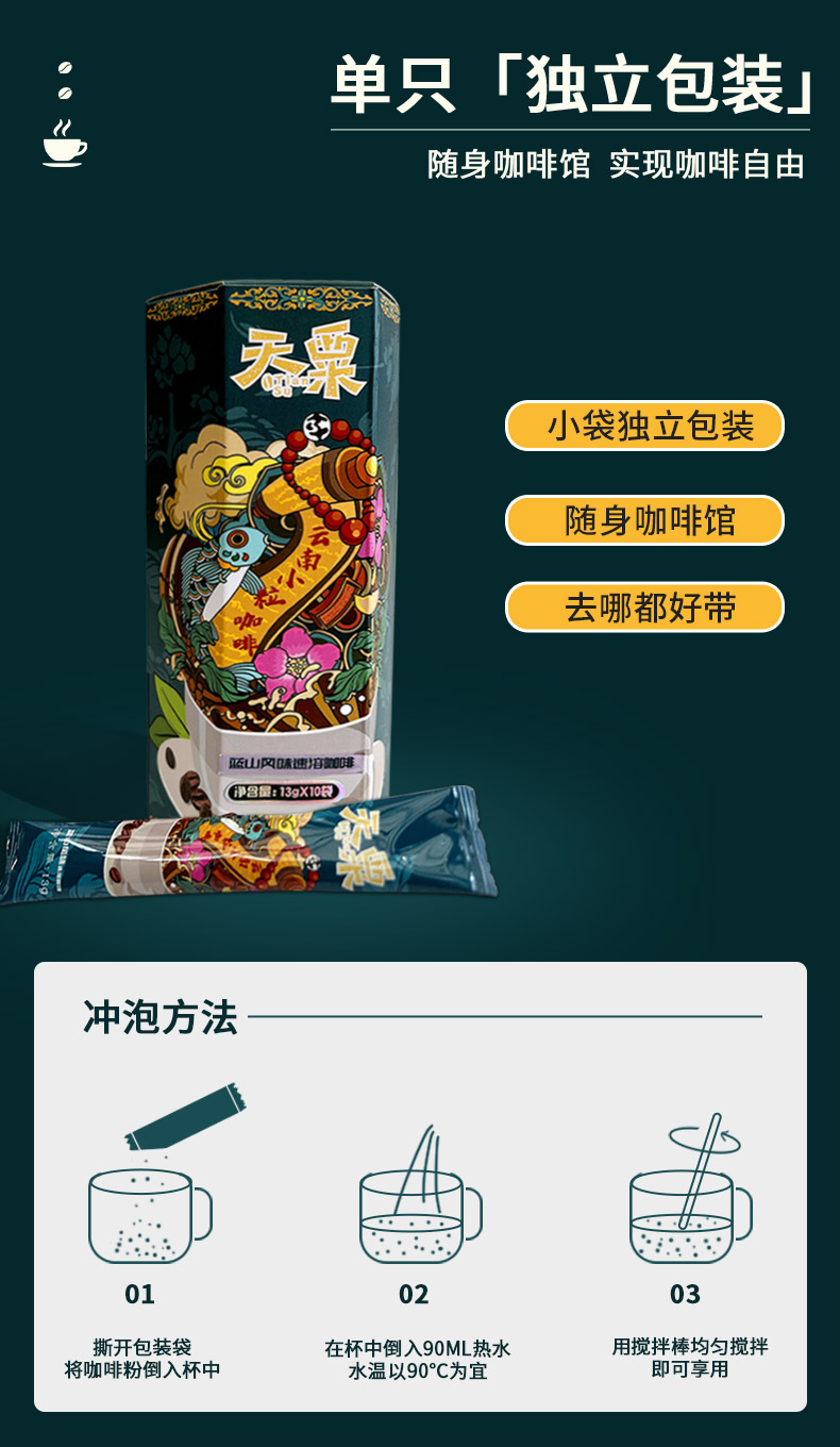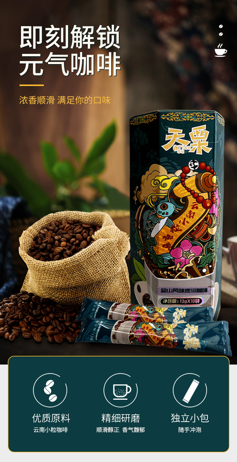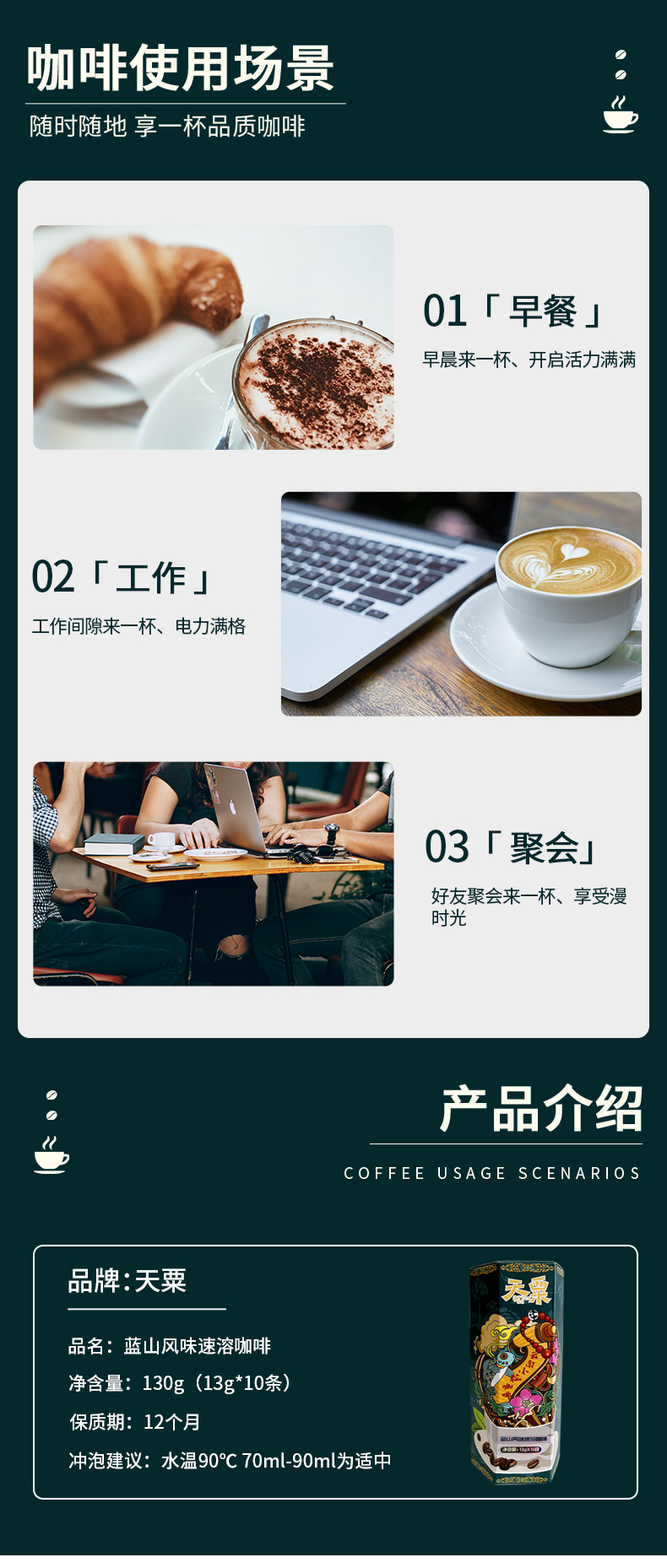 天粟牌三合一速溶咖啡(蓝山风味)10条*13g/盒