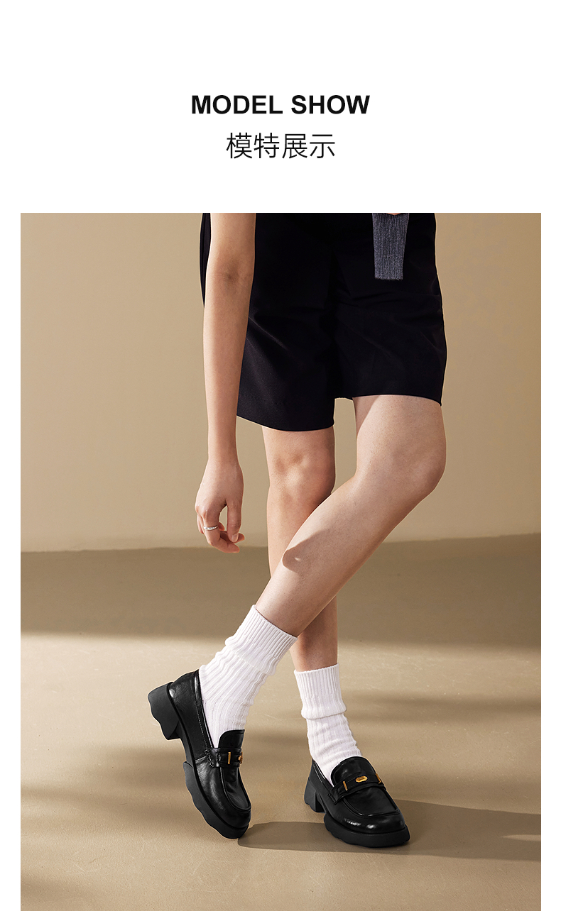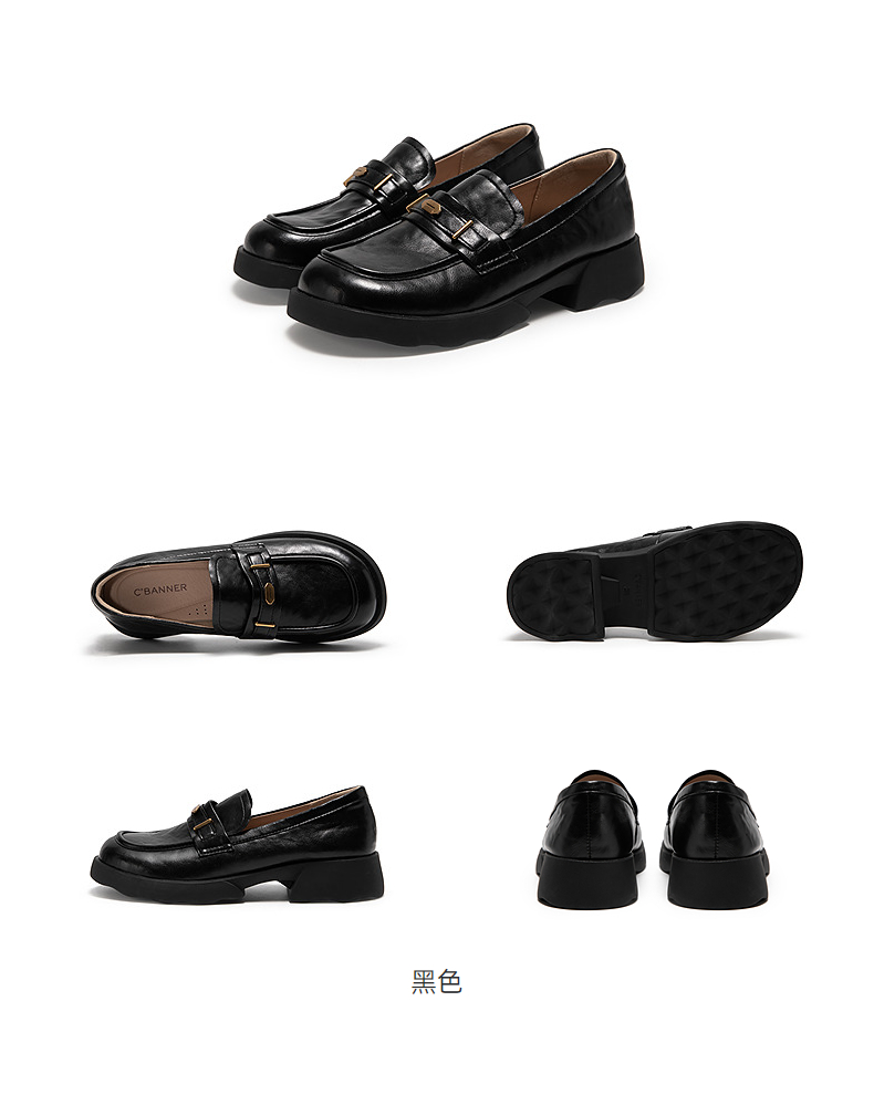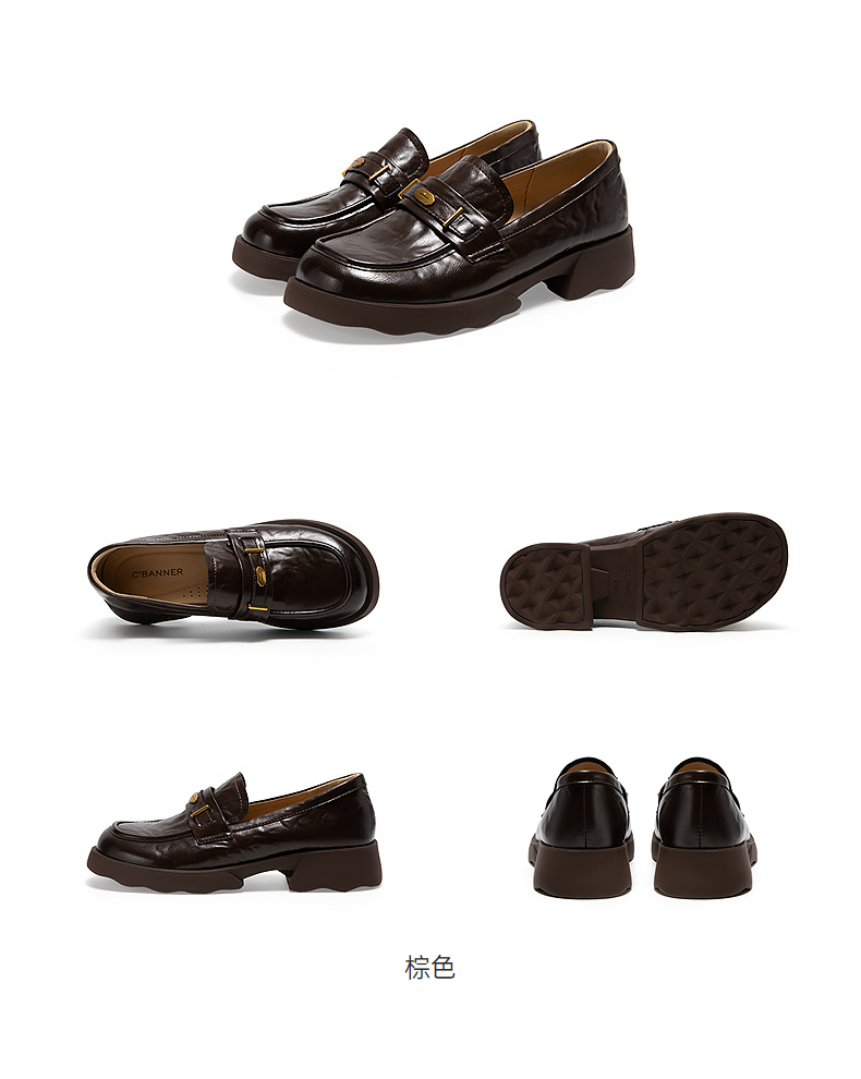 千百度厚底增高乐福鞋女款手抓皮通勤一脚蹬深口单鞋A25152802