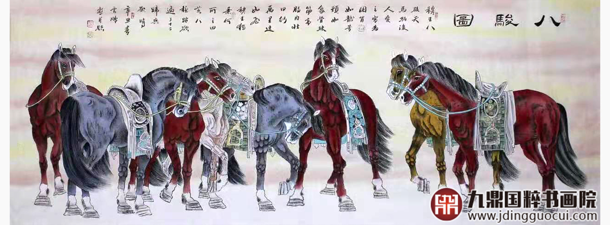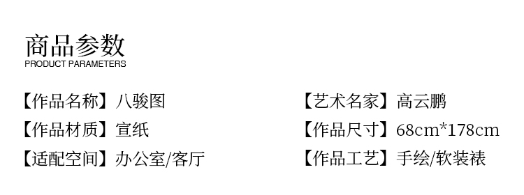 高云鹏《八骏图》68*178cm 动物横幅作品 办公室挂画