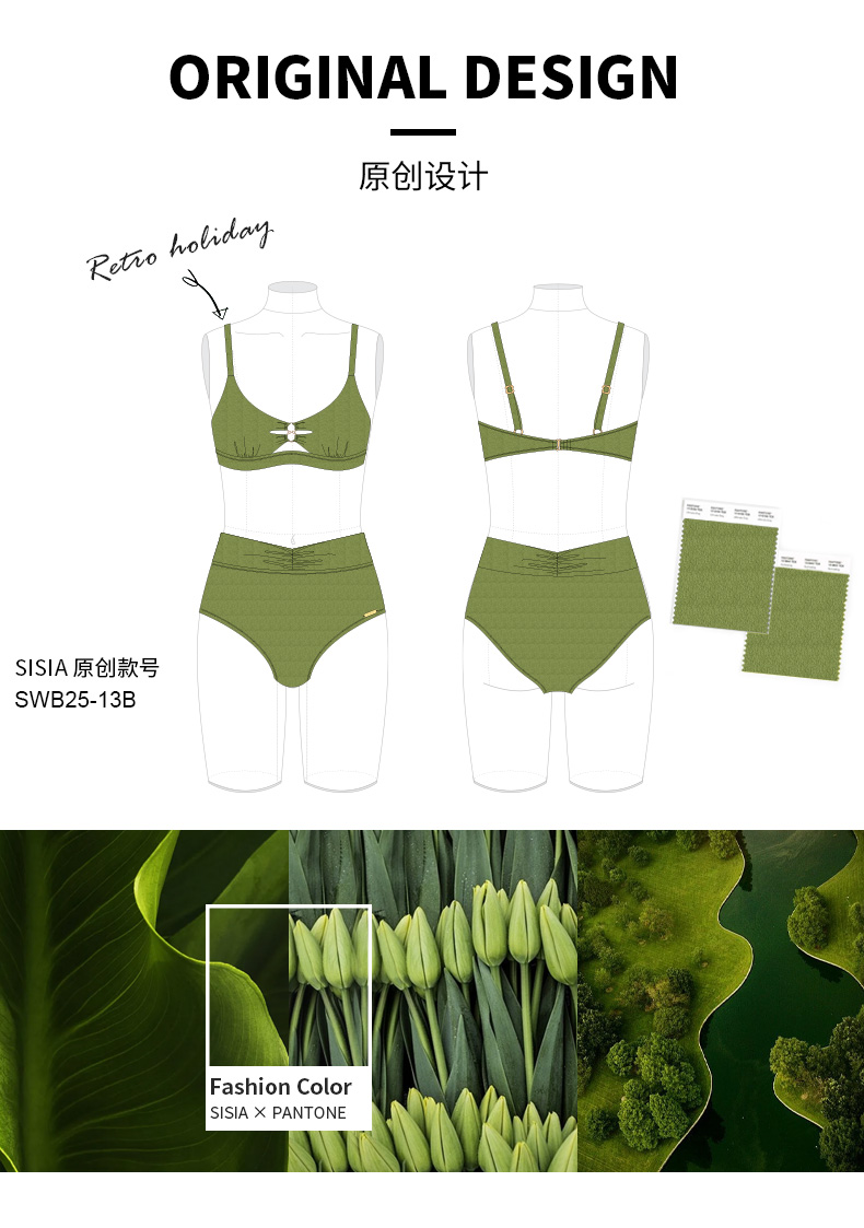 sisia新款法式泳衣女高级感分体保守显瘦海边度假泡温泉泳衣SWB25-13B
