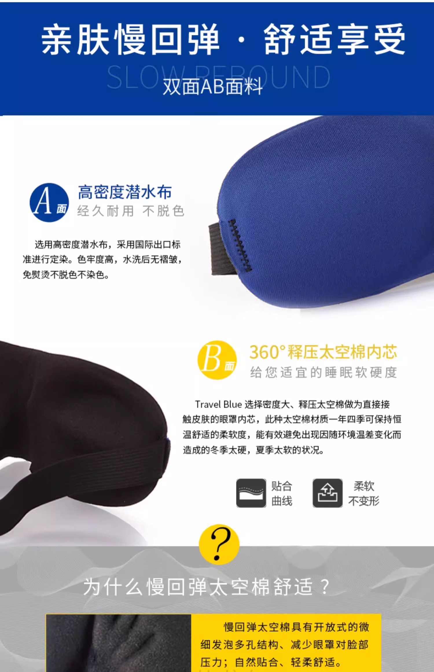 【专柜多样屋】TravelBlue/蓝旅3D立体剪裁护眼罩遮光午睡办公休息学生男女