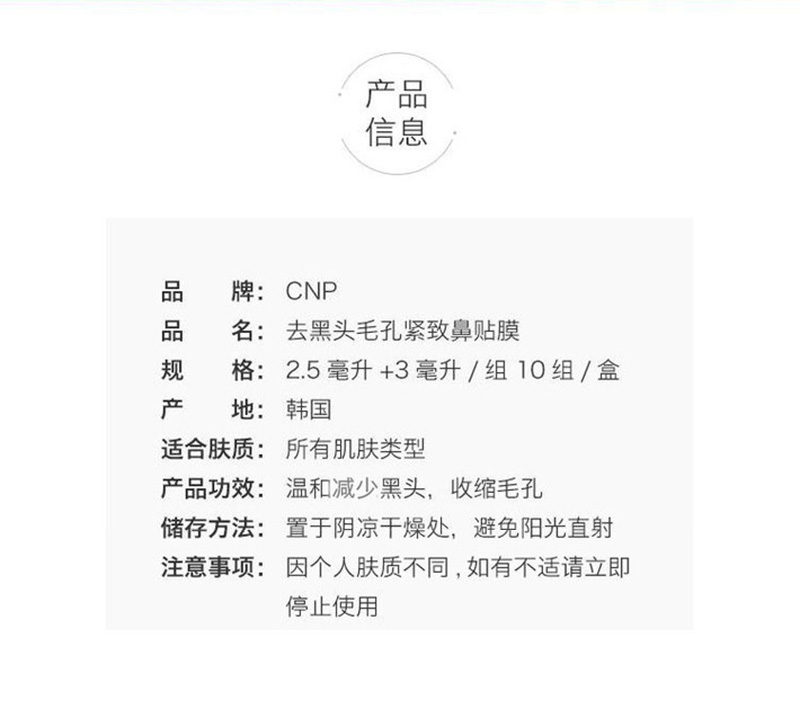 CNP 去黑头毛孔紧致鼻贴膜 10组/盒